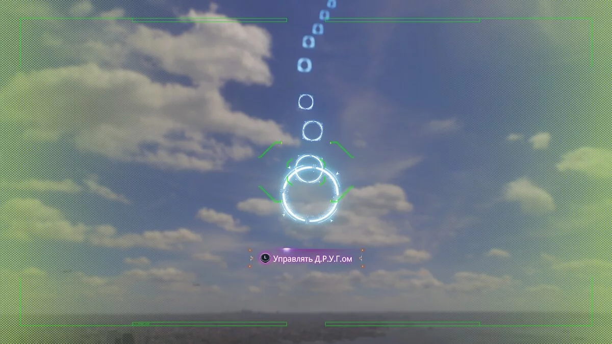 Необходимо взять контроль над беспилотником и пролететь через большую часть светящихся колец. Для этого достаточно слегка отклонять стик в нужном направлении.