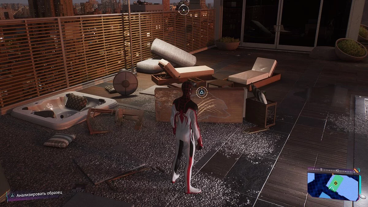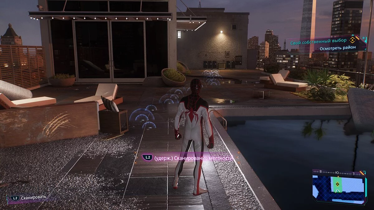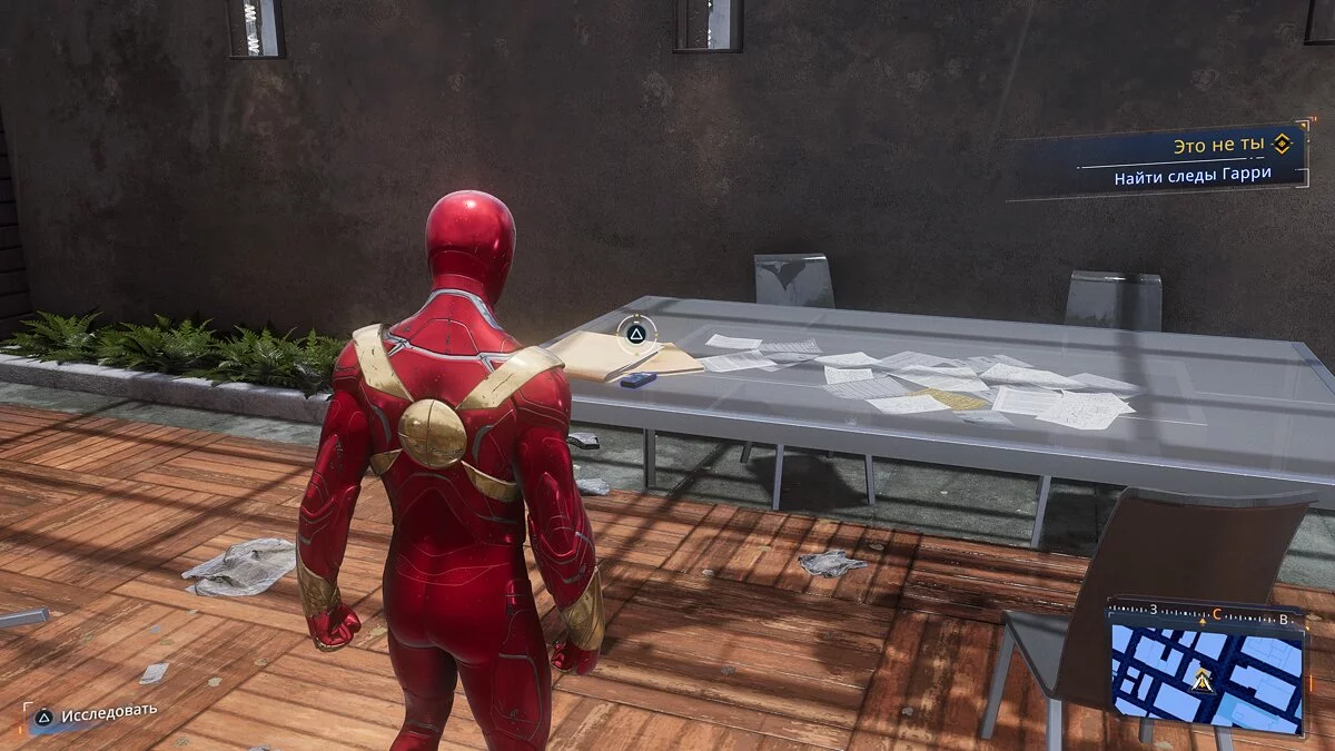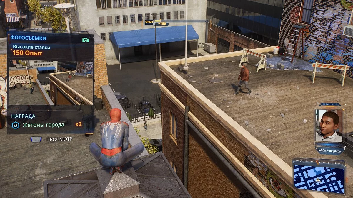 Следующая цель появится не сразу. Можете сделать ещё одно фото в одной из указанных областей или же одолеть группу бандитов. Через некоторое время Питер заявит, что хочет переодеться. Отправляйтесь к тайнику и открывайте рюкзак. Теперь вы сможете создавать новые костюмы.
