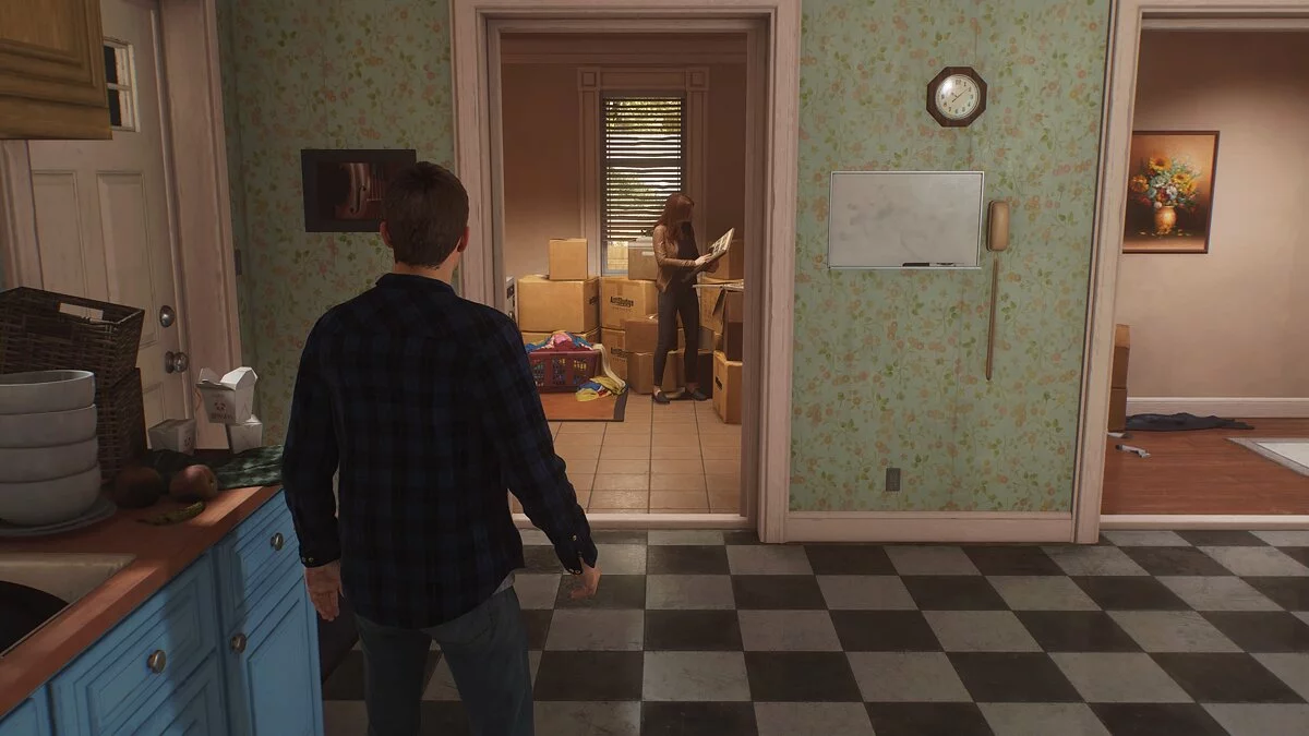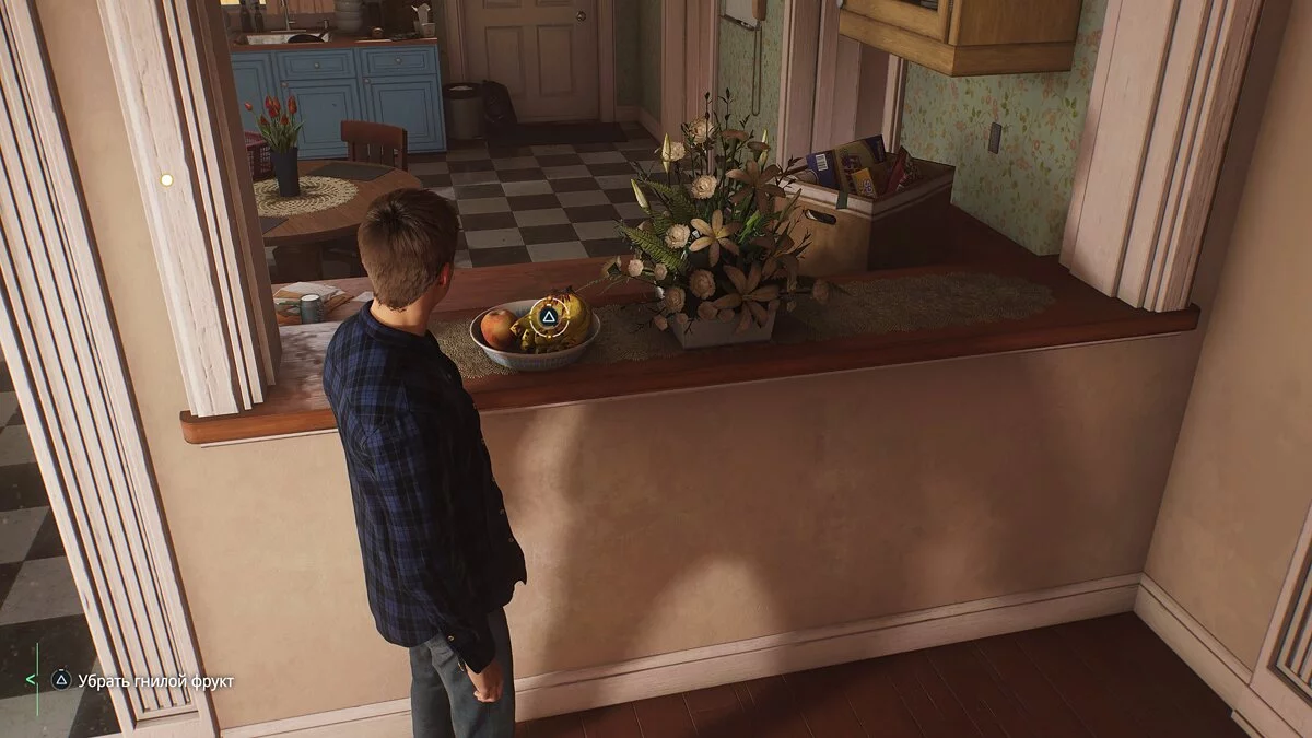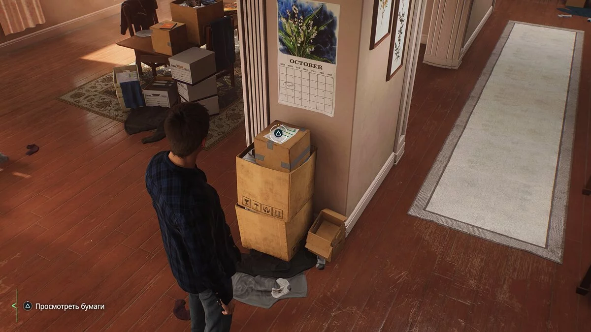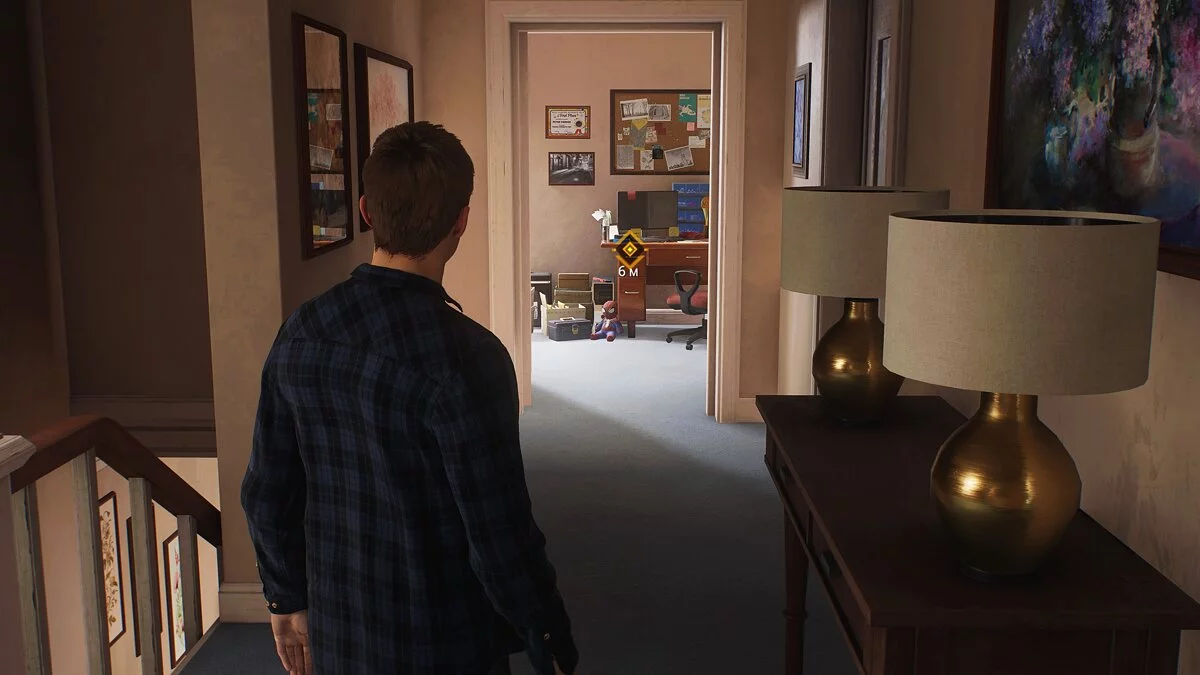 Посмотрите на фотографию, а затем поднимайтесь на второй этаж и проходите в свою комнату. Нажмите R3 (стик геймпада), чтобы увидеть текущую цель задания. Снимите картину со стены.