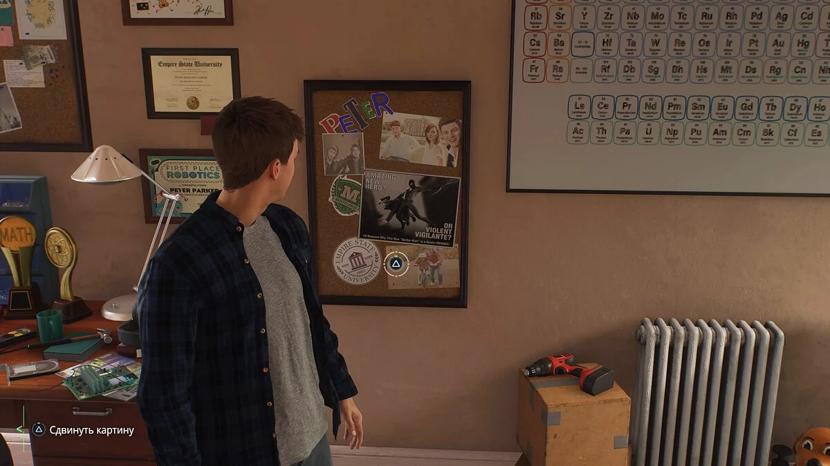 Одолейте врагов, пройдите в дом Мэй и сломайте стену в комнате Паркера.