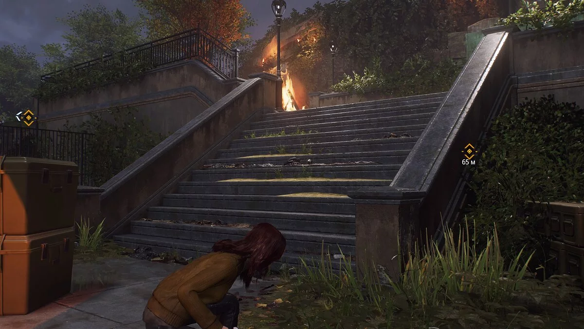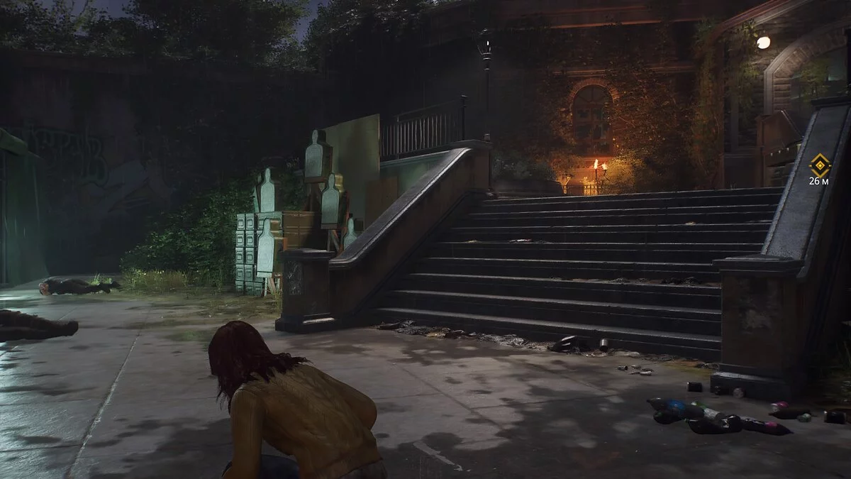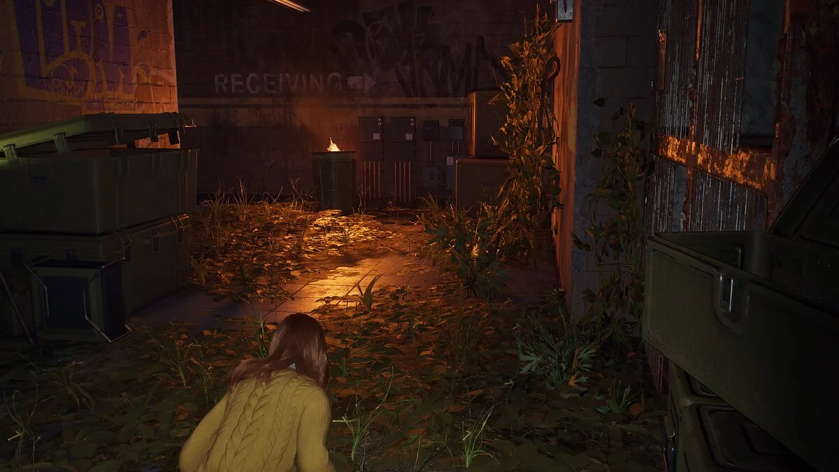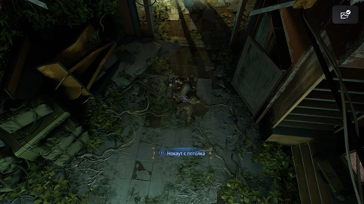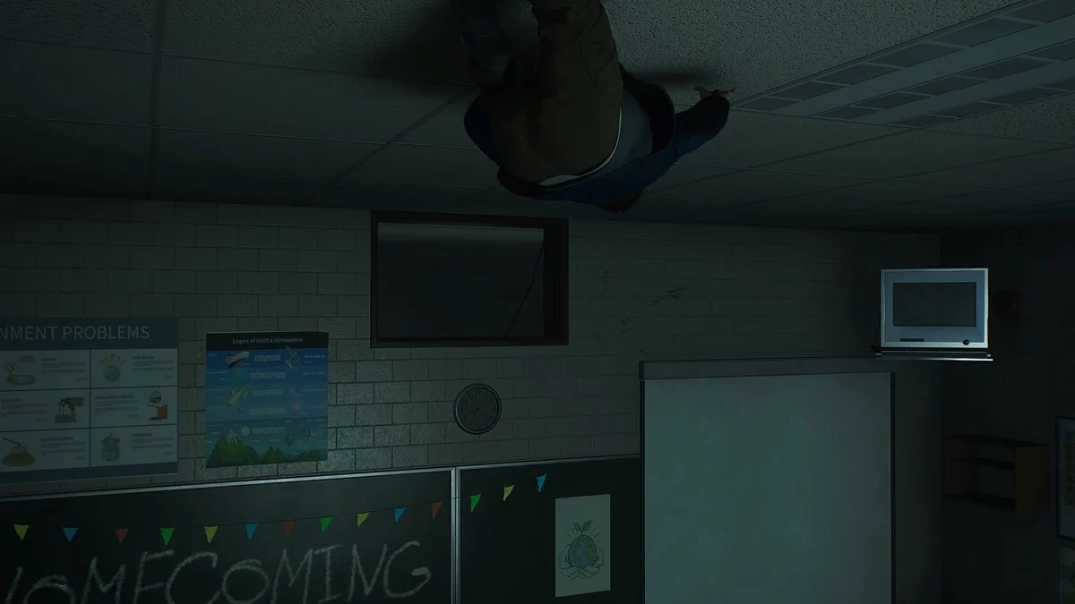После кат-сцены вы окажетесь на потолке. Ползите к вывеске с надписью Ноmecoming. От неё поворачивайте направо, заходите в соседнюю комнату, а затем передвигайтесь в помещение слева от вас. Там вы сможете спрыгнуть вниз.