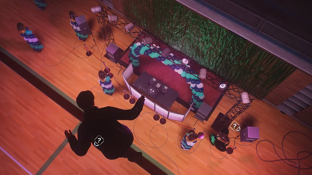 После видеоролика нужно будет трижды отвлечь полицию. Выдвиньте трибуны слева от вас, притяните корзину с мячами и выстрелите в пульт диджея.