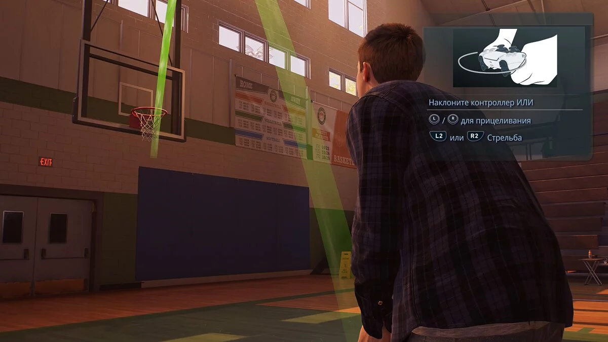 Действие перенесётся в наше время. Гарри предложит поиграть в баскетбол. Наведите траекторию движения так, чтобы она проходила через кольцо. В этом случае линия будет гореть зелёным цветом. Затем кидайте мяч.