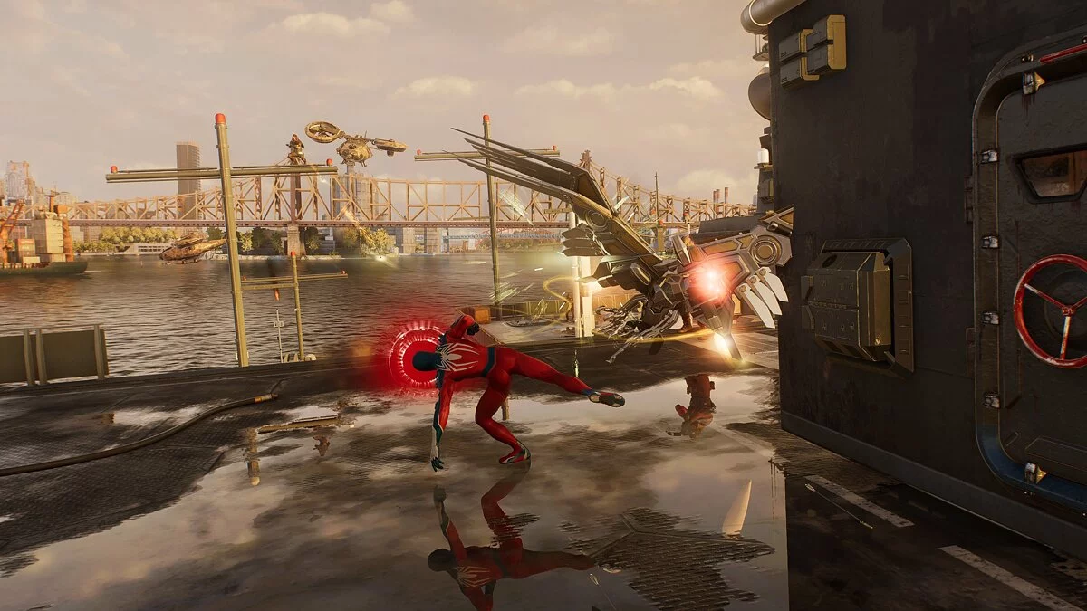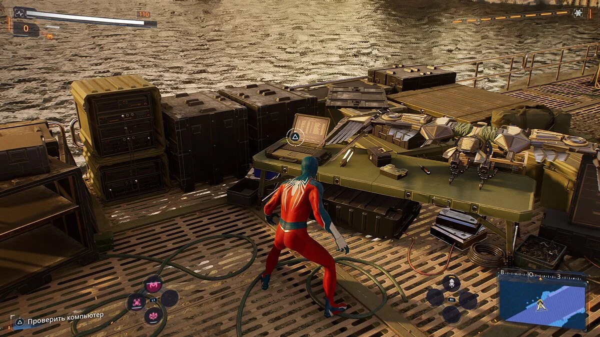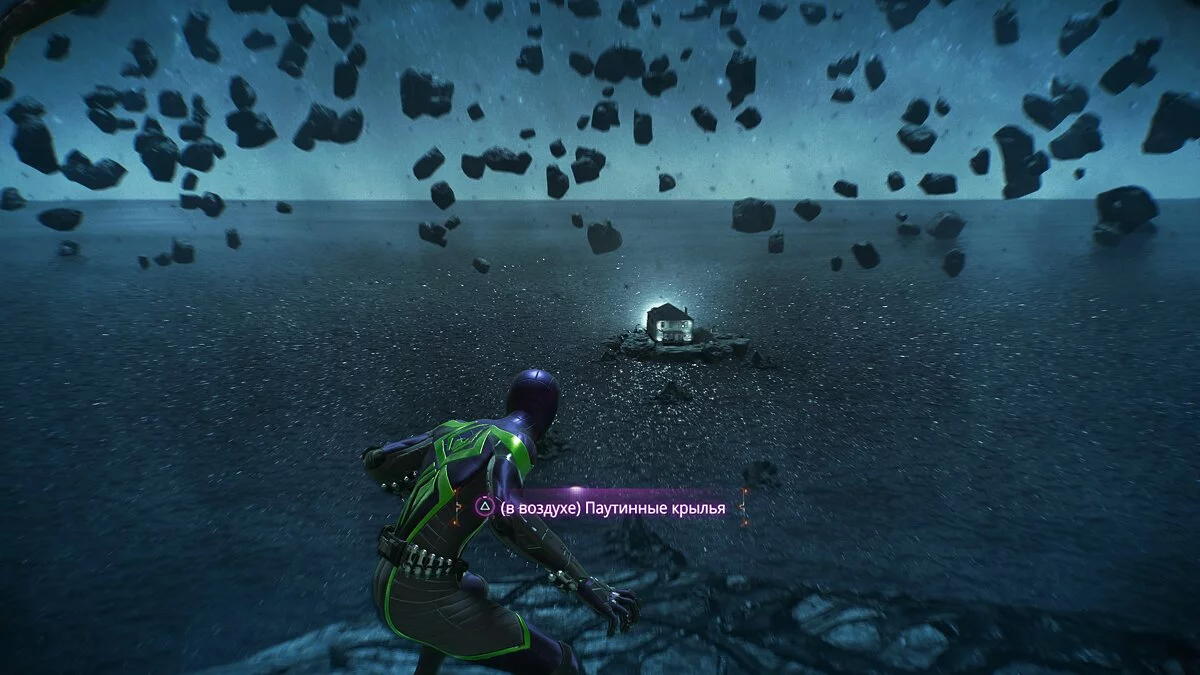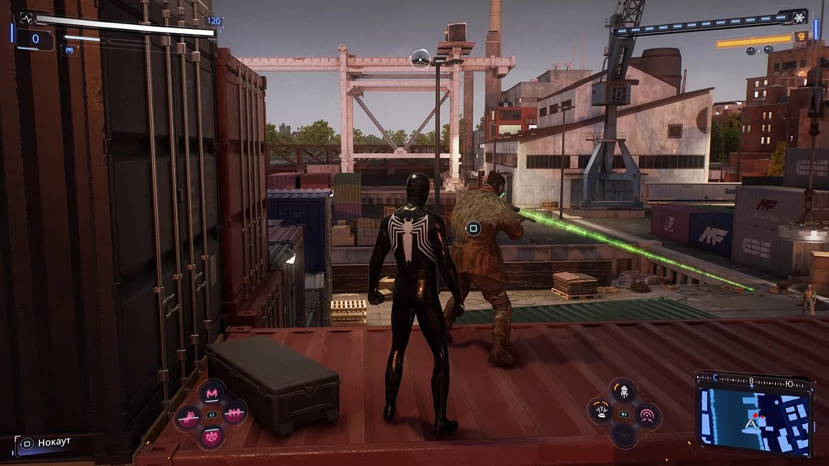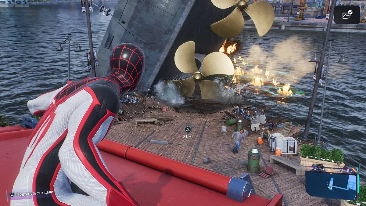 Когда вам вновь дадут управление над Питером Паркером, нажмите «треугольник», чтобы активировать паутиновые крылья. Летите к причалу, возле которого прячется Песочный человек. Отклоняйте левый стик вниз, чтобы набрать высоту и уклоняйтесь от вражеских атак. А когда вы приблизитесь к Марко, бейте его мощным ударом.
