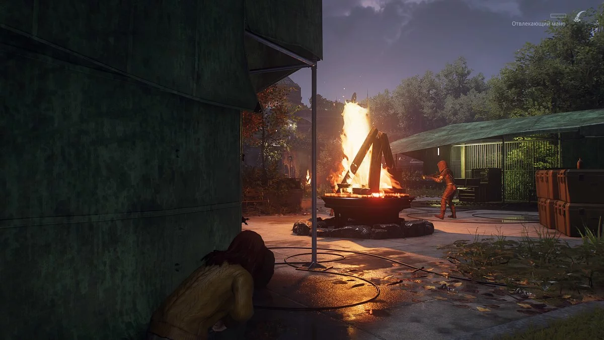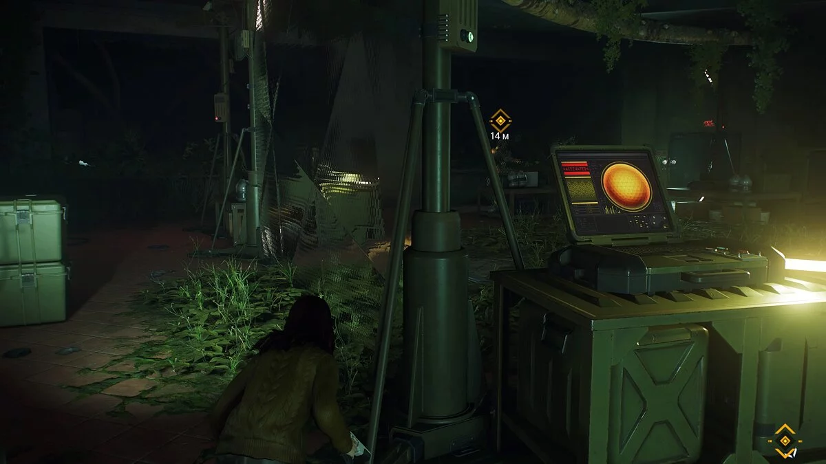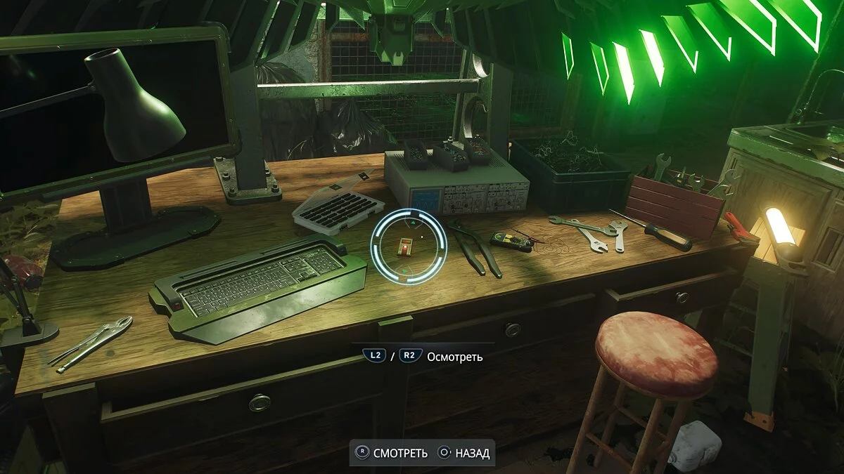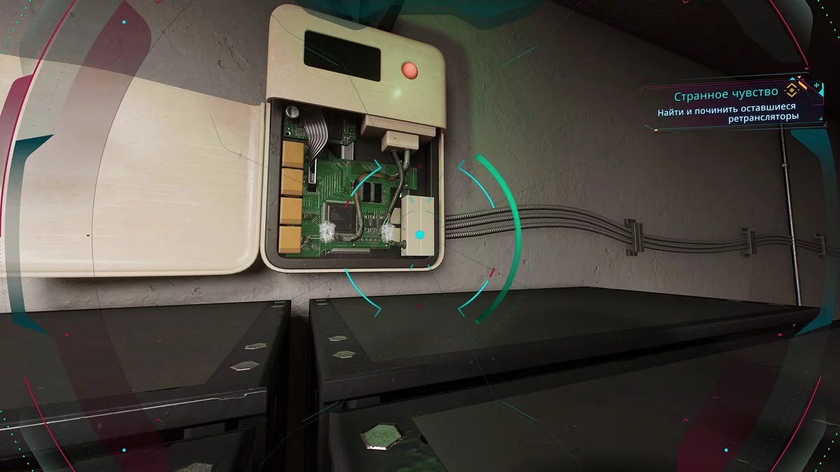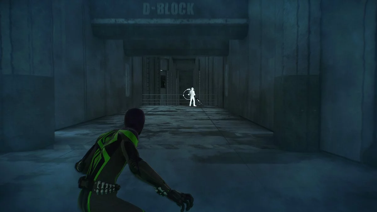 Попробуйте открыть дверь. У вас ничего не получится, поэтому возникнет идея — добраться до аварийного генератора. Сломайте решётку и прыгните вперёд. Вам нужно идти вдоль линии электроснабжения. Чтобы увидеть её, нажмите кнопку R3.