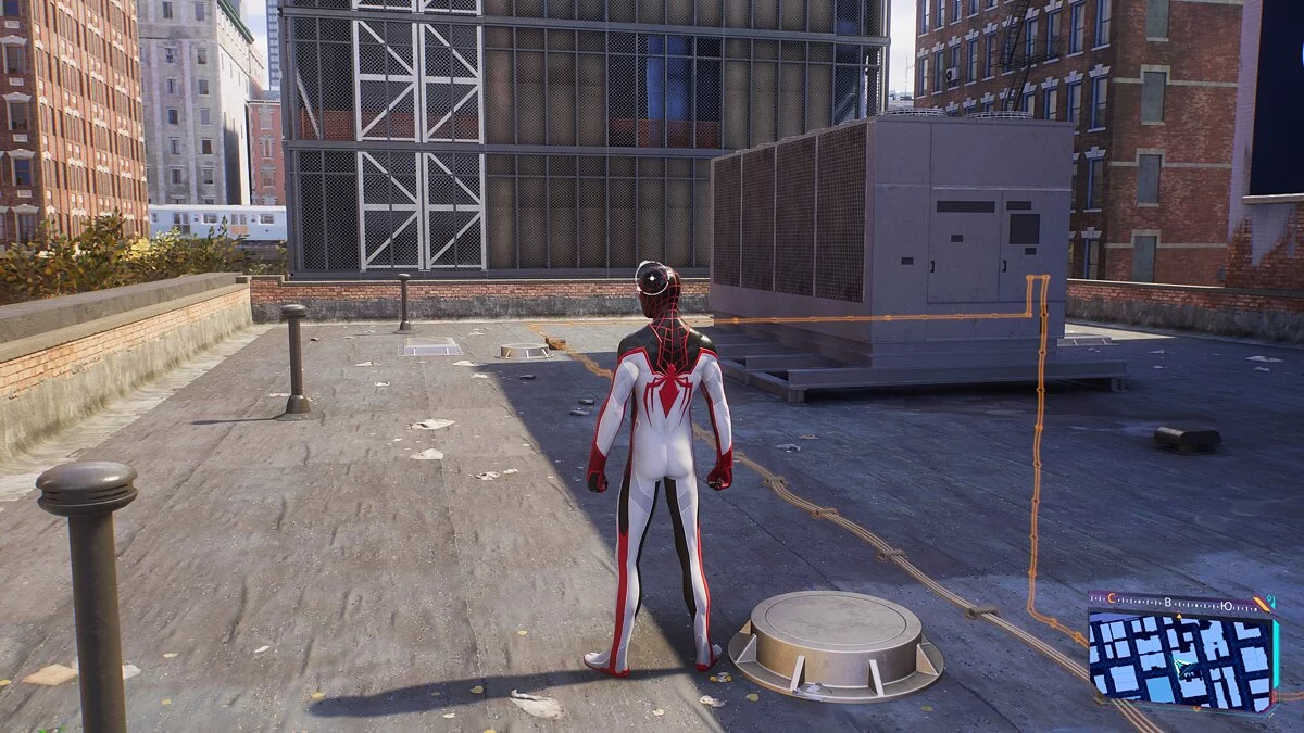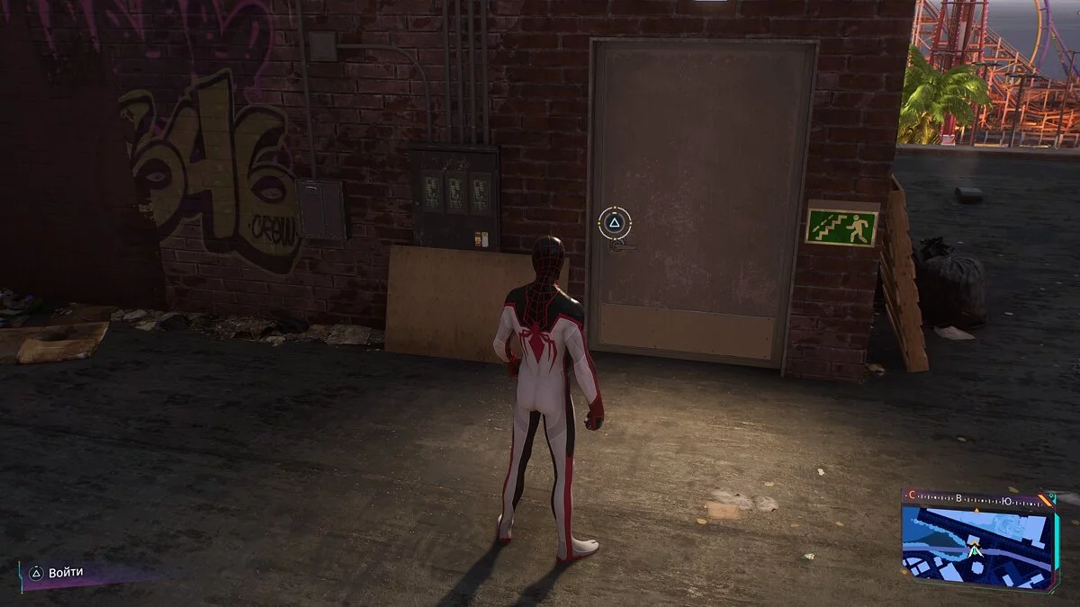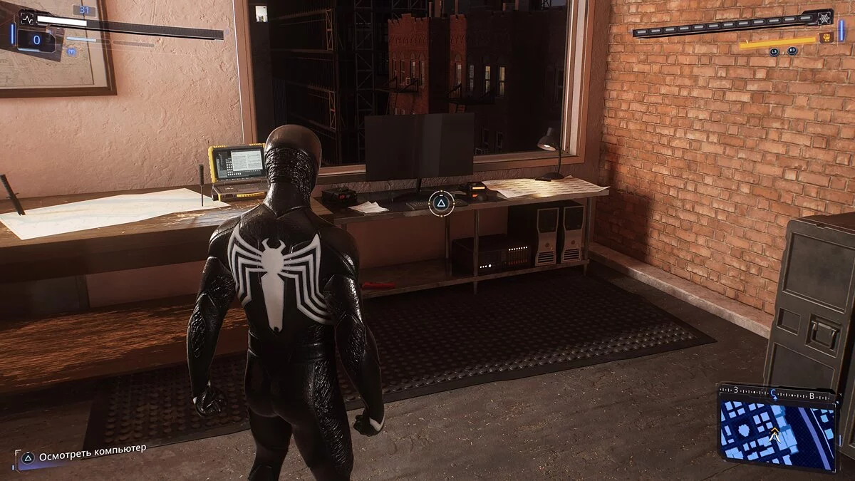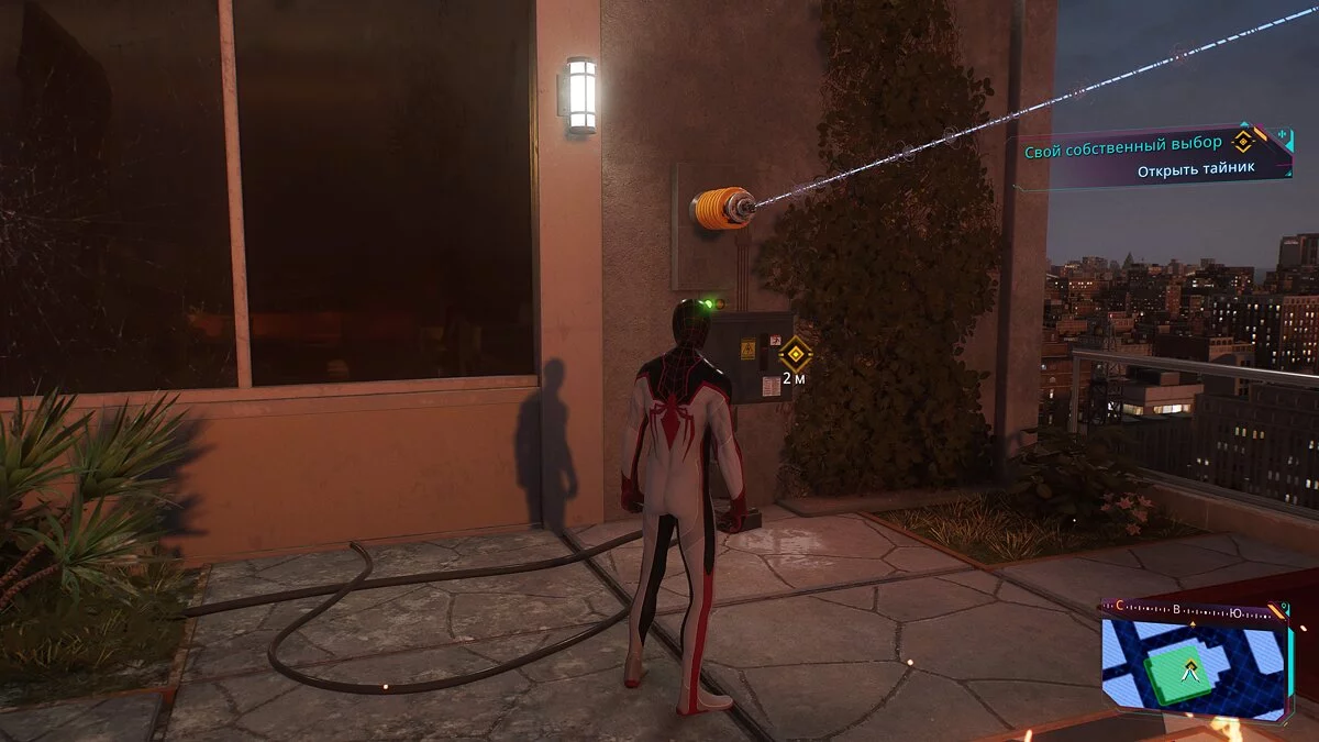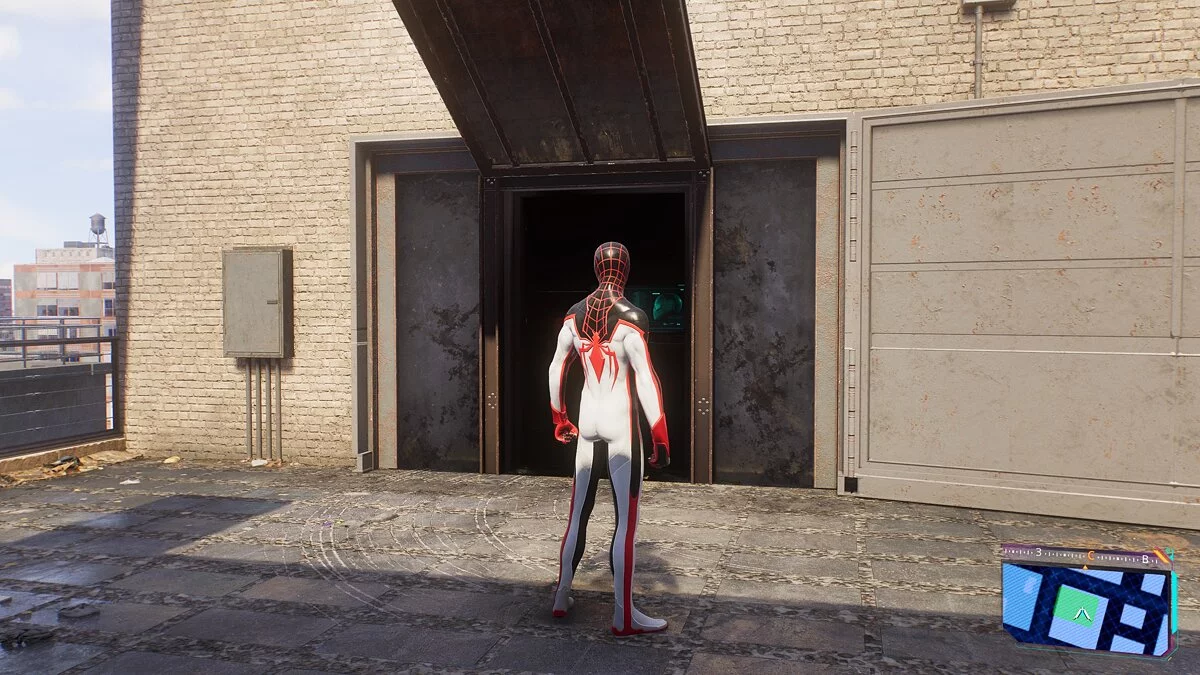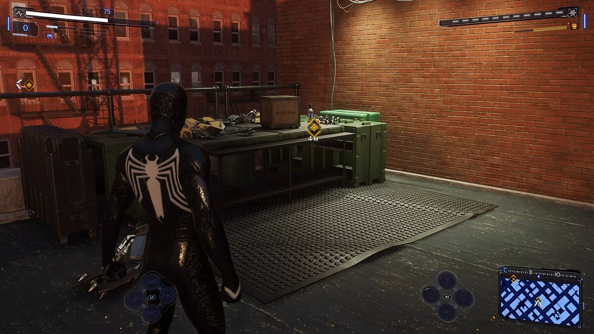 Останется спуститься вниз и зайти в помещение. Справа находится сейф. Взаимодействуйте с ним. После этого откройте меню костюма и увеличьте максимальный запас здоровья. Теперь вы сможете находить тайники Бродяги, которые встречаются по всему Нью-Йорку.