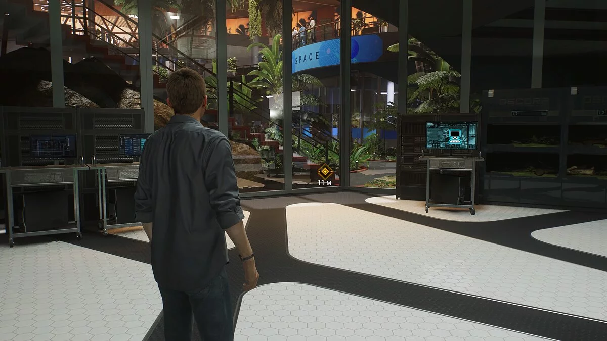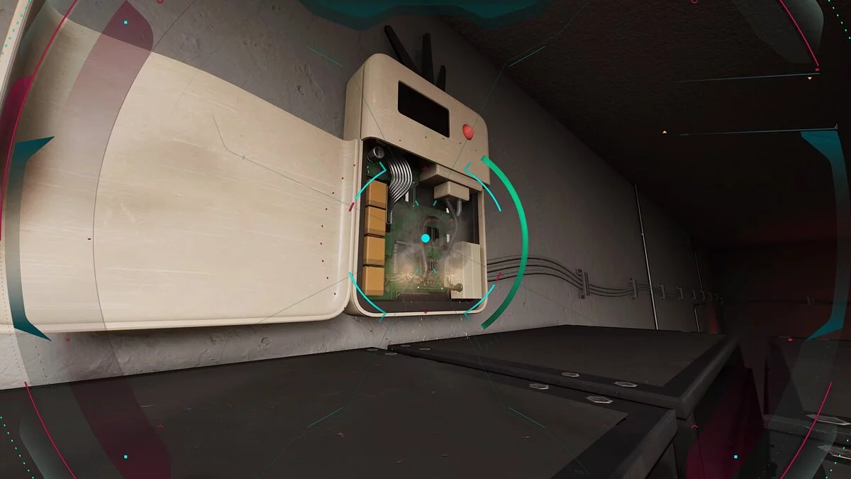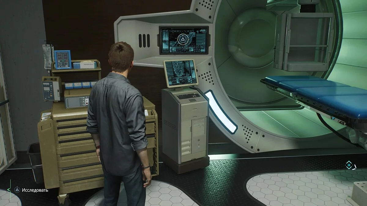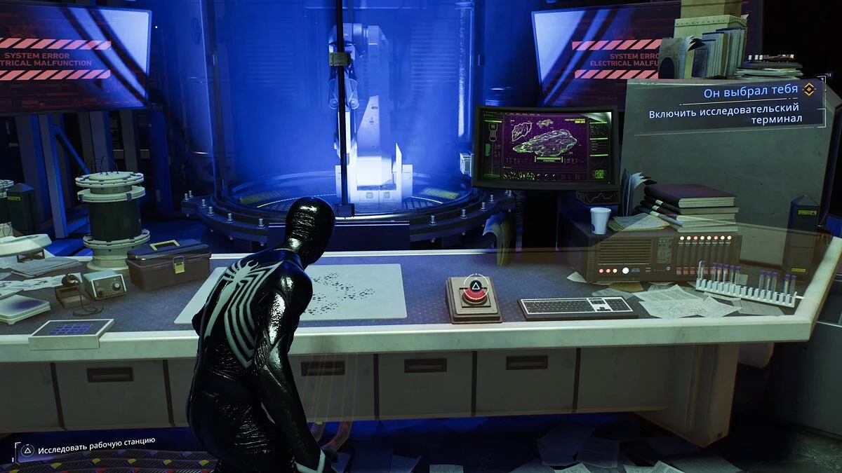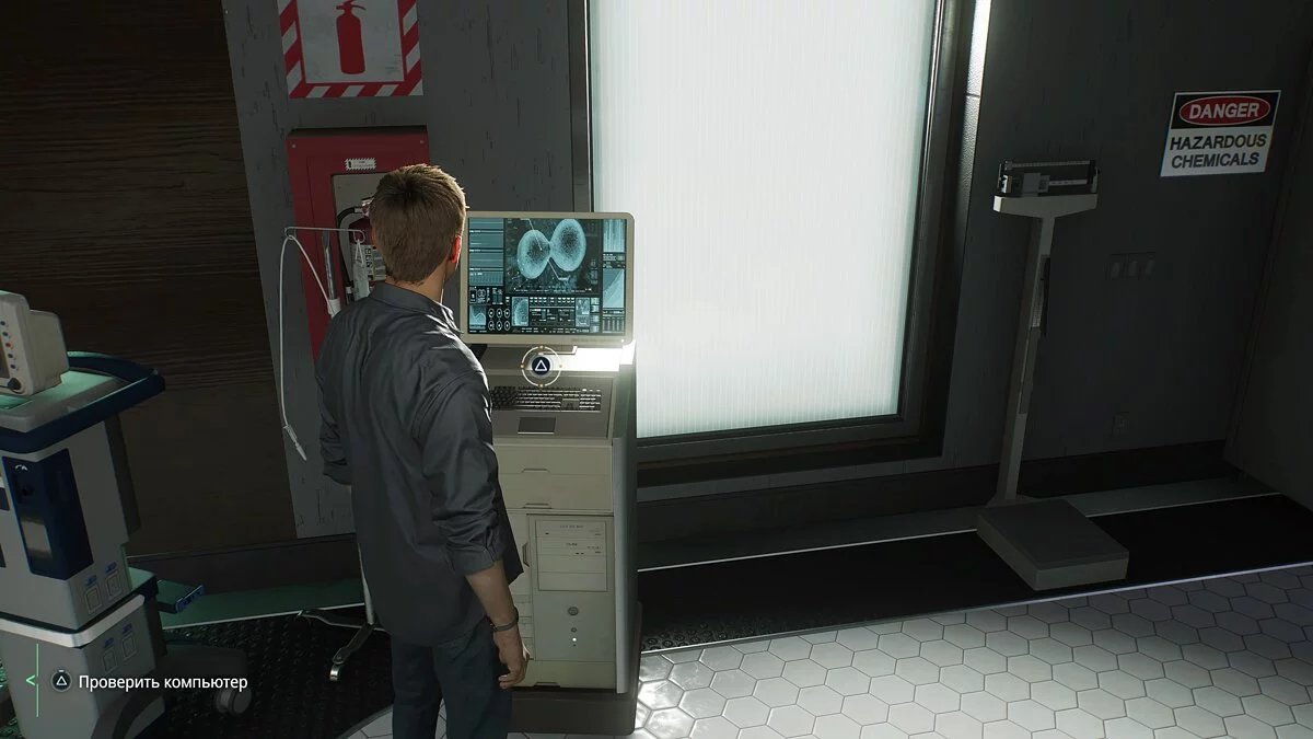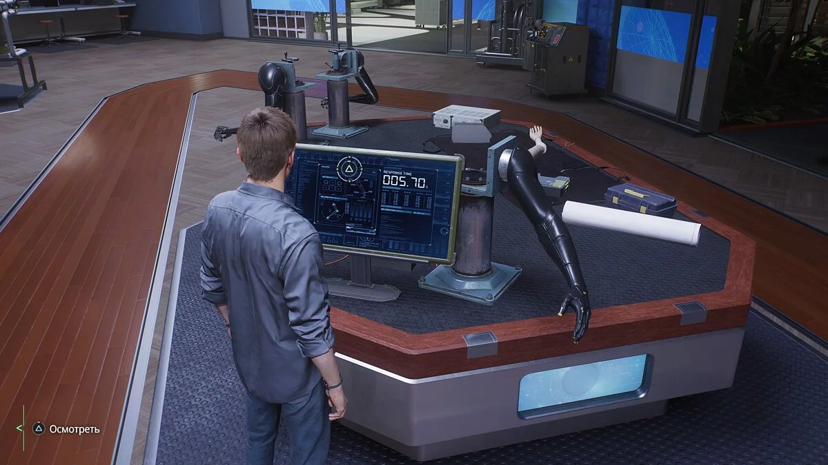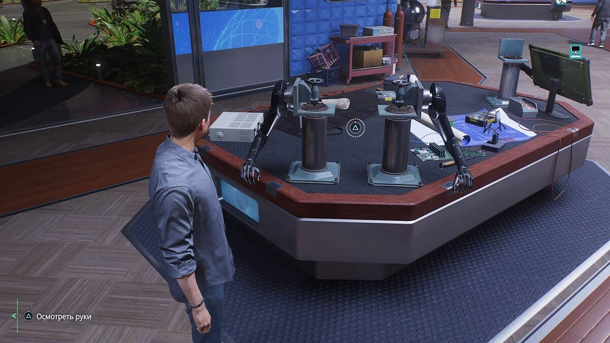 Затем вам предложат изучить оборудование лаборатории. Осмотрите роботизированные руки, интерфейс управления и огромный камень. В комнате слева обратите внимание на компьютер.