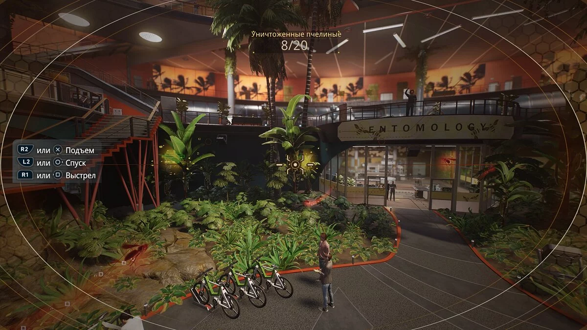 Приятель покажет вам исследовательский центр. Просто следуйте за ним. После разговора с доктором Янг вы возьмёте контроль над дроном. Нужно стрелять по пчелиным волкам, которые обведены красным цветом.