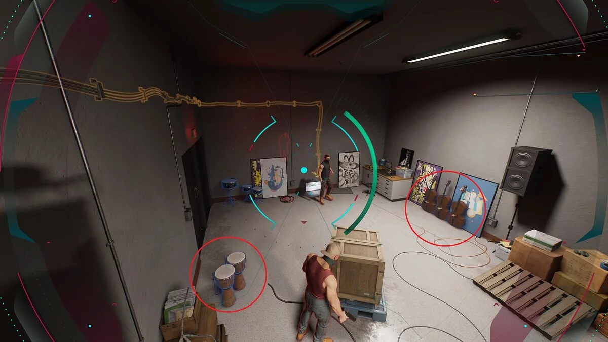 Выстрелите паутиной по генератору, чтобы отвлечь мужчину слева.