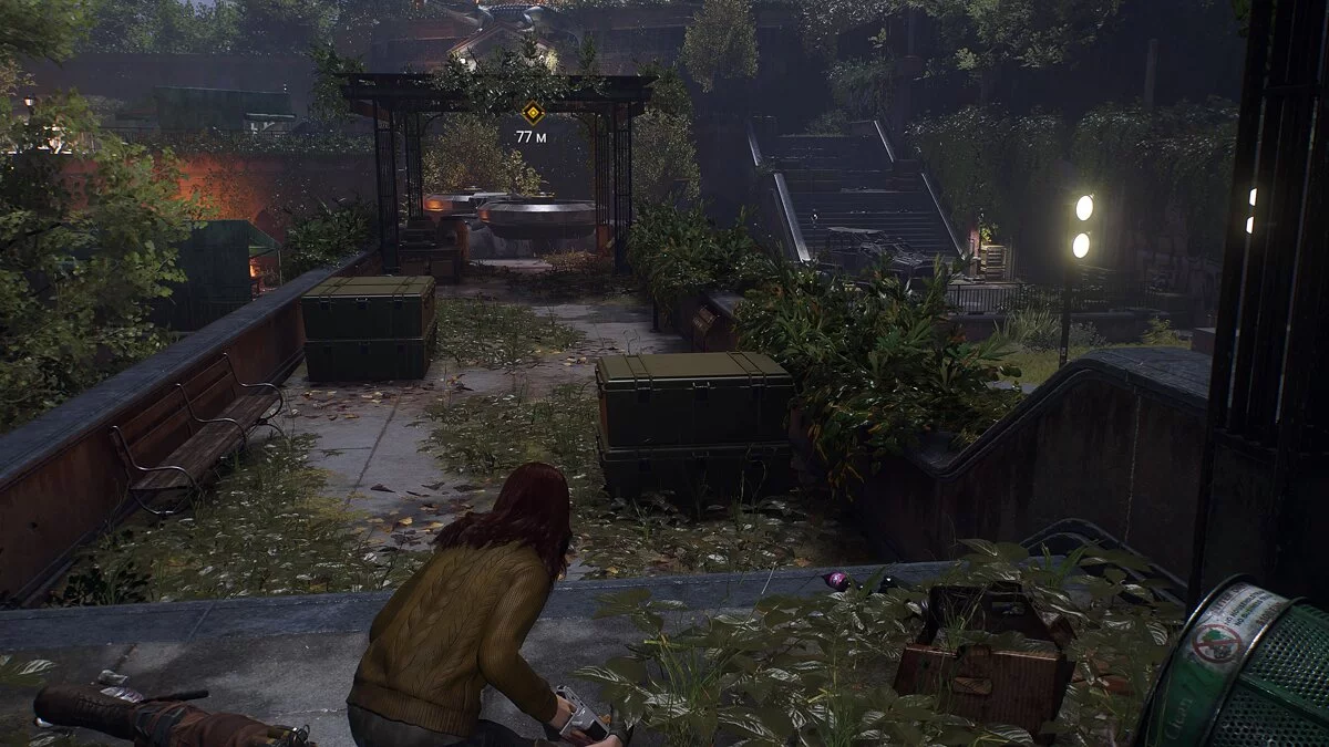 Следующая цель — забраться на вершину здания. Так вам нужно взаимодействовать с устройством, которое запускает дроны.