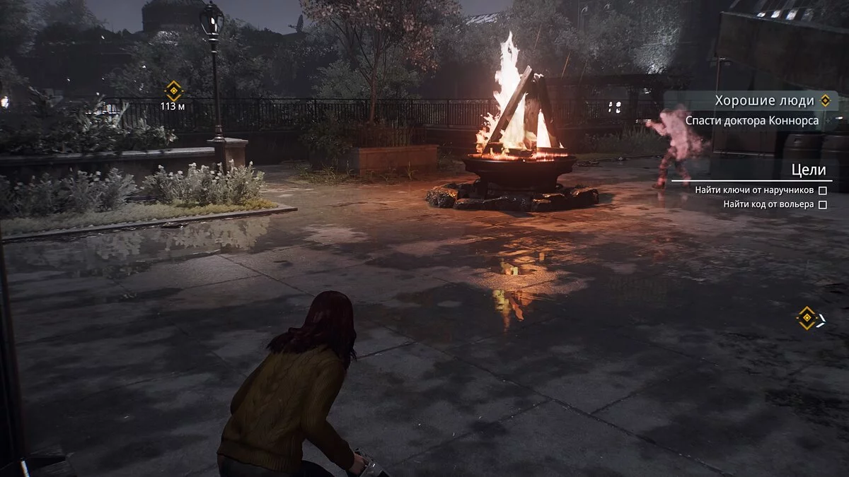 Благодаря им вы сможете привлекать внимание головорезов а расстоянии. Стреляйте ему в лицо, подбегайте и применяйте электричество. Можете потренироваться на охотнике, который вас обнаружил. Выберитесь из подвала через окно.