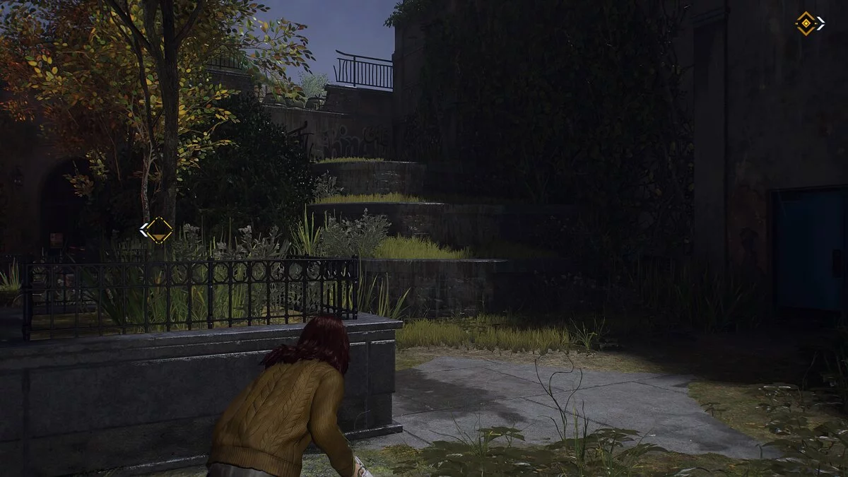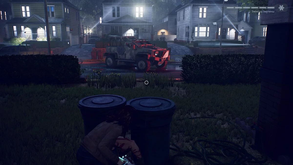 Открывайте дверь и выходите на следующую улицу. Двигайтесь прямо, а затем переходите дорогу. Дождитесь, пока охотники смотрят в разные стороны, и бегите.