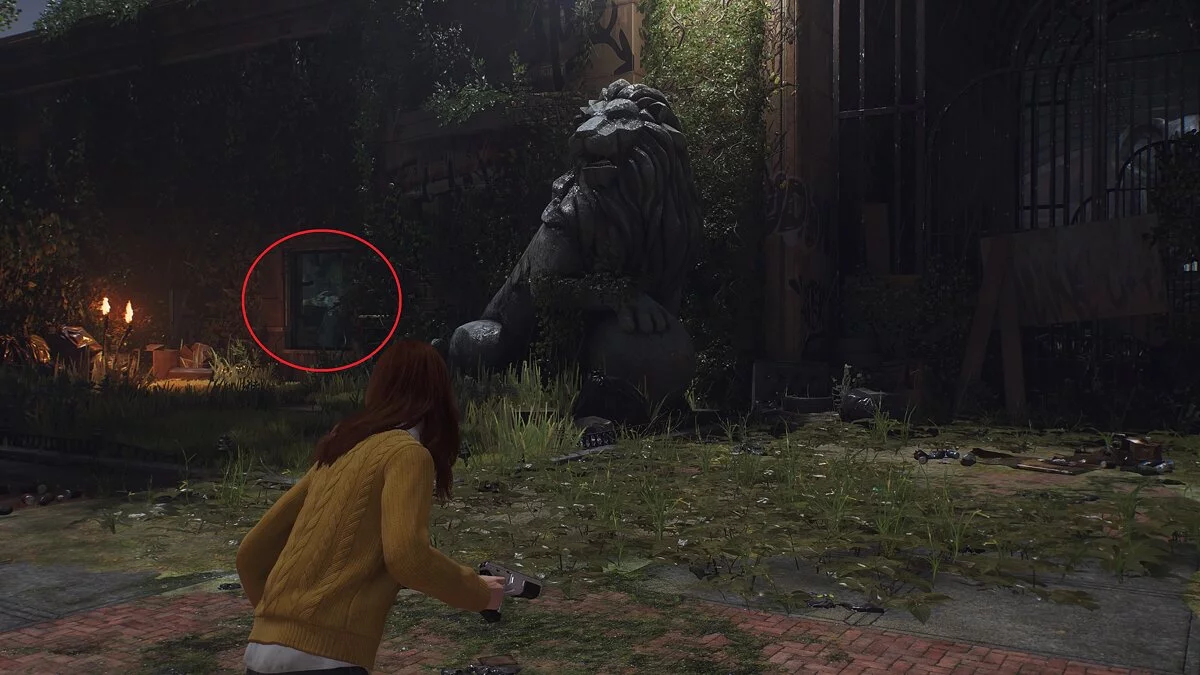 Забирайтесь в заброшенное здание, прыгайте на потолок и проходите в соседнюю комнату.