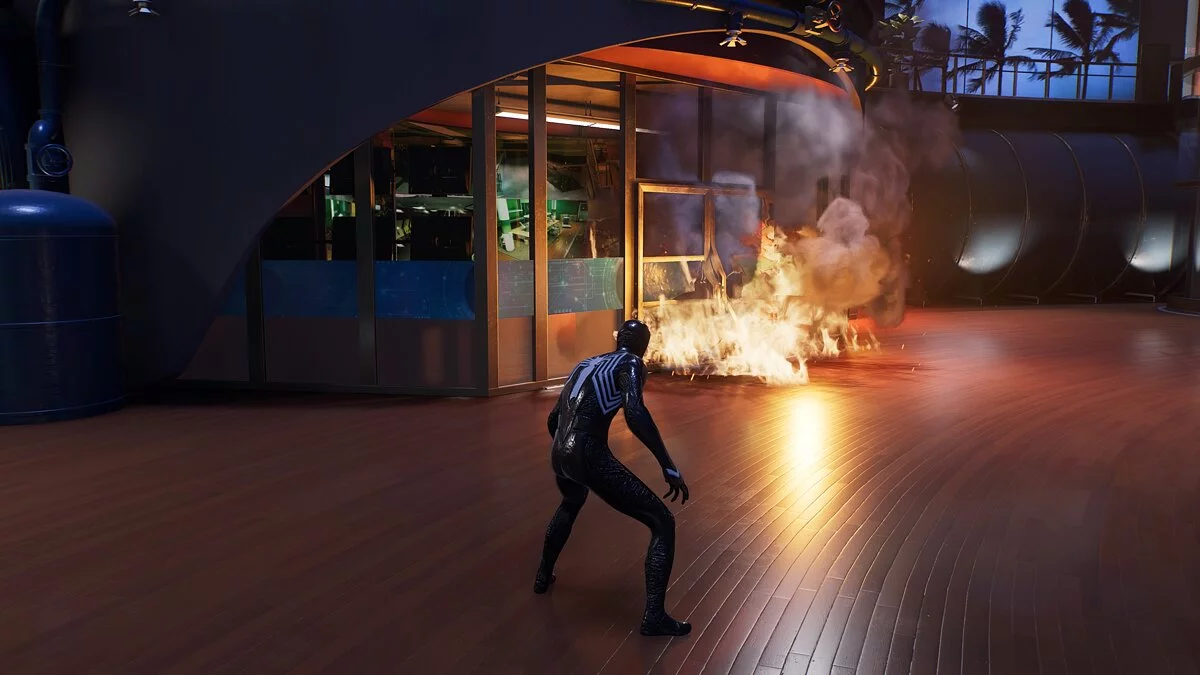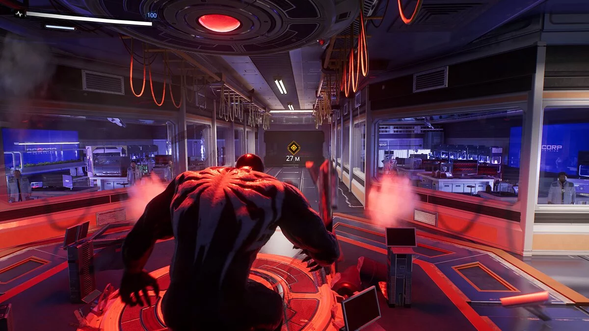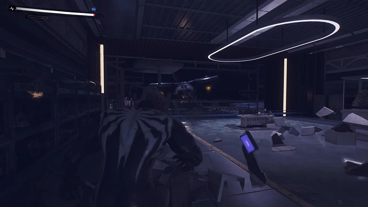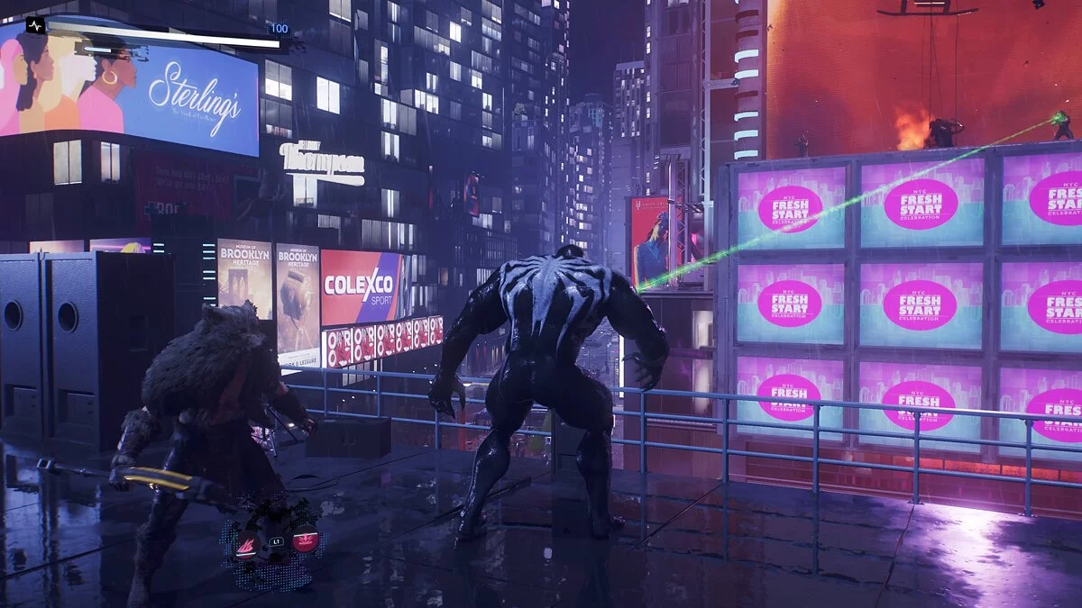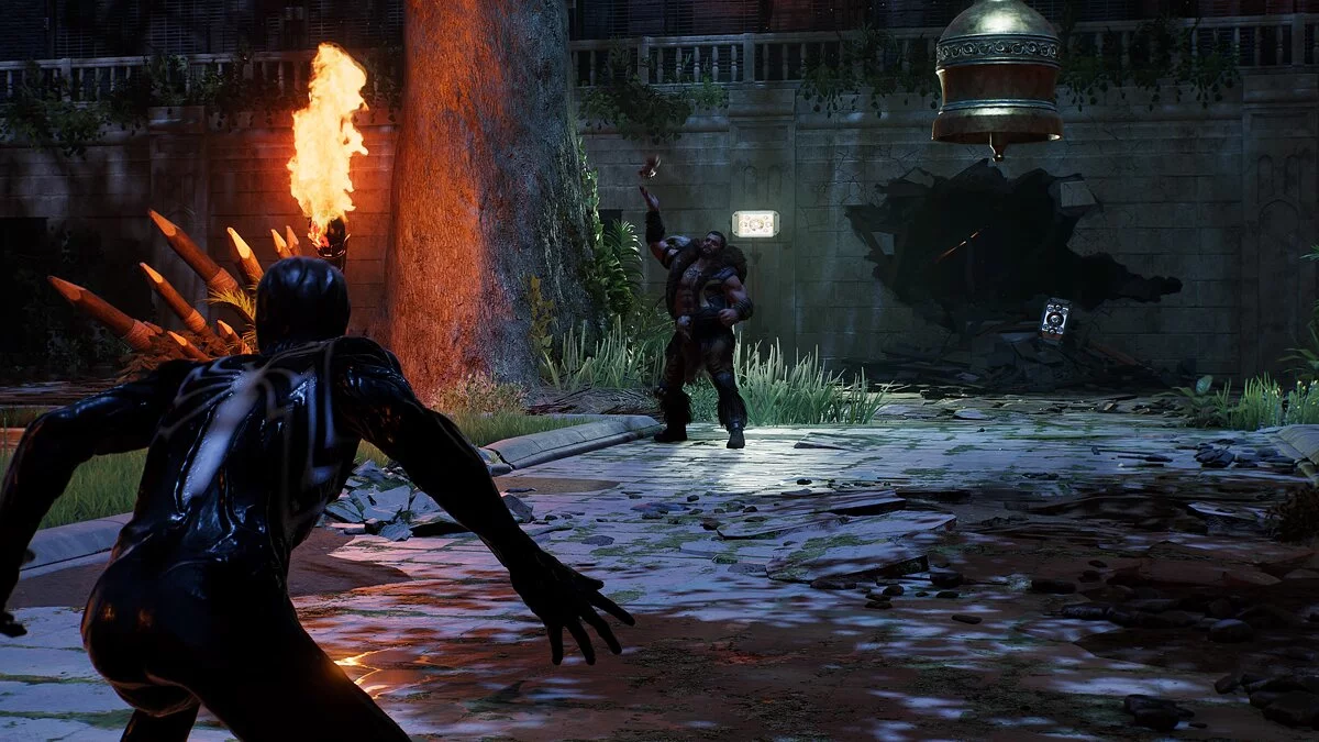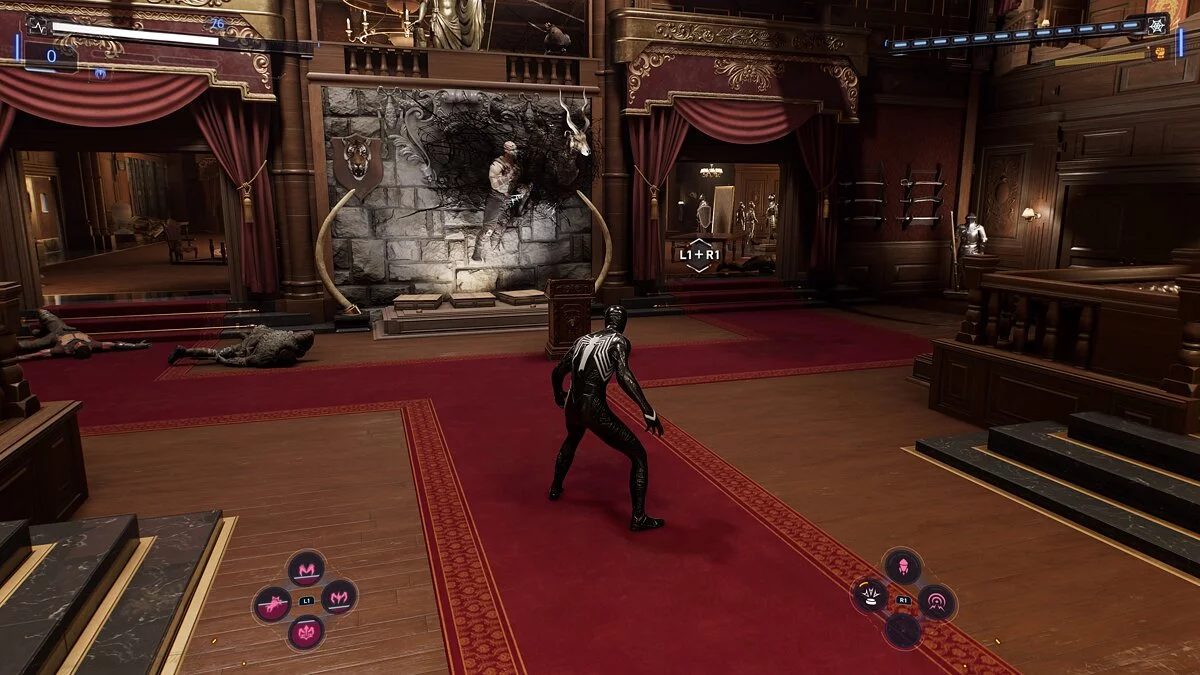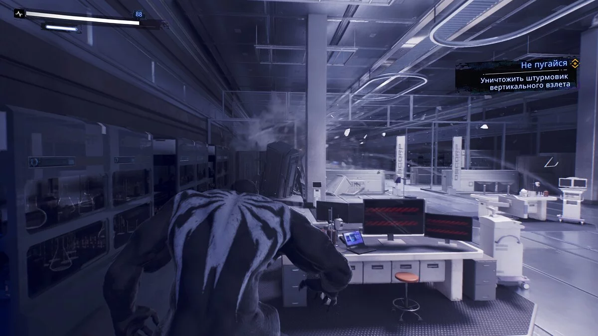 После сражений с рядовыми врагами на вас выбегут два симбиота-гиганта. В бою с ними полагайтесь, прежде всего, на умения антивенома, которые будут быстро перезаряжаться и не забывайте парировать атаки.