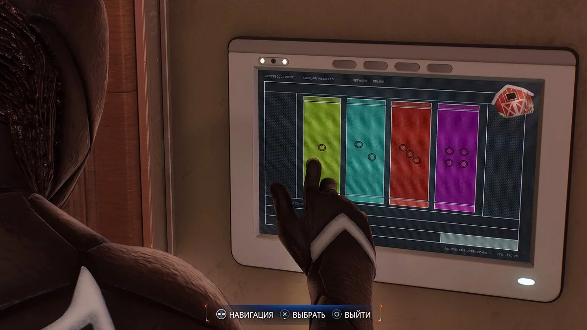 После этого вам нужно отправиться на самый верх, где вас ждёт ещё одна мини-игра. Нужно подбирать символы так, чтобы на местах соприкосновения элементов число полосок и их цвет совпадали.