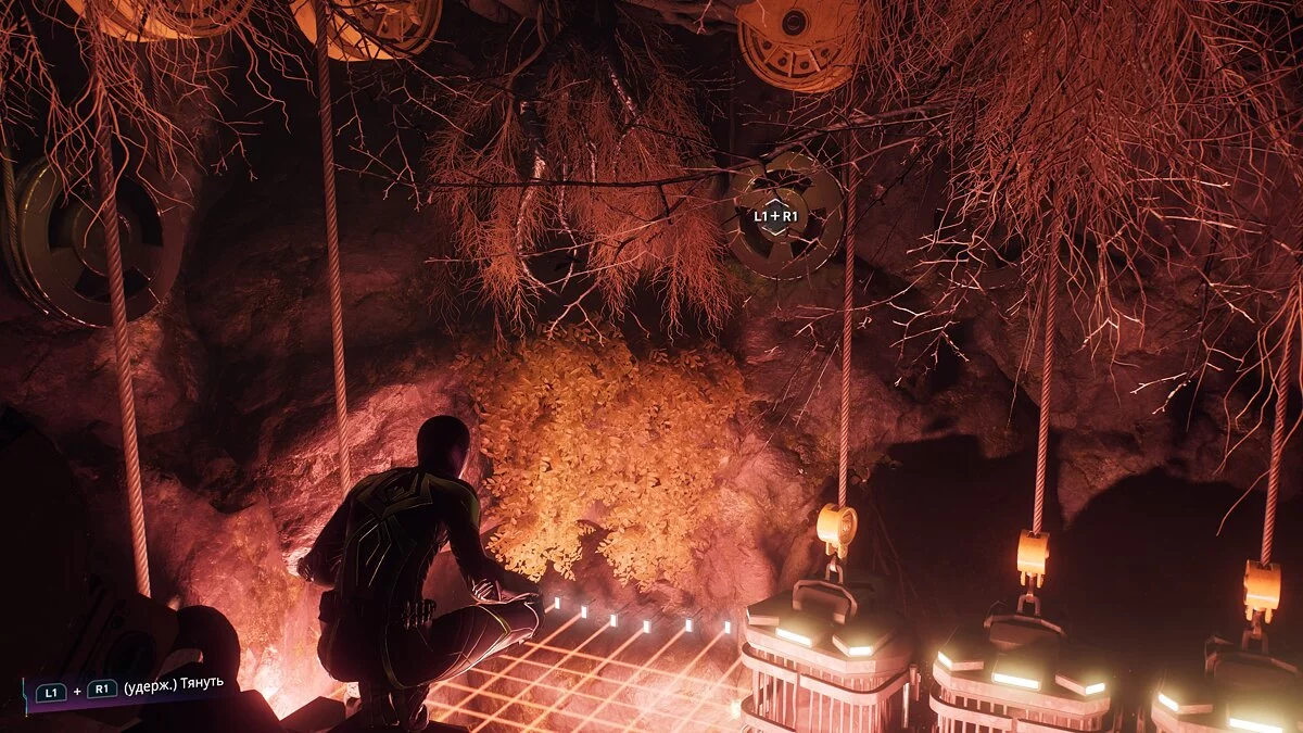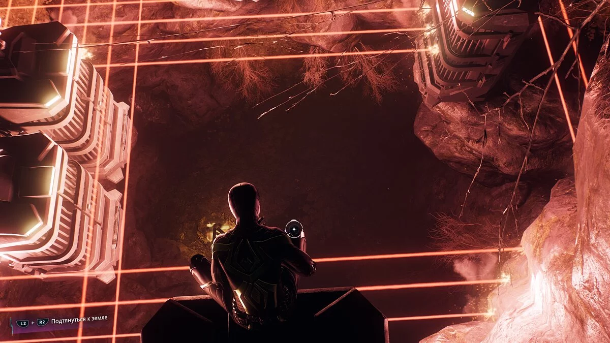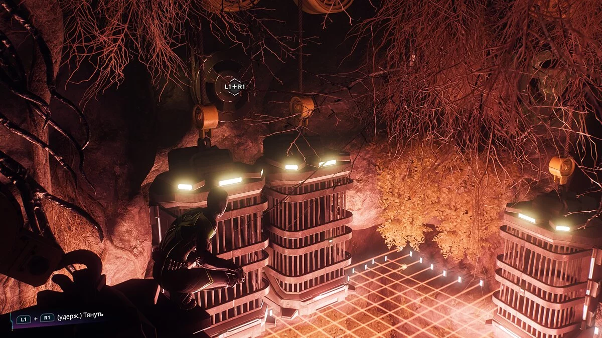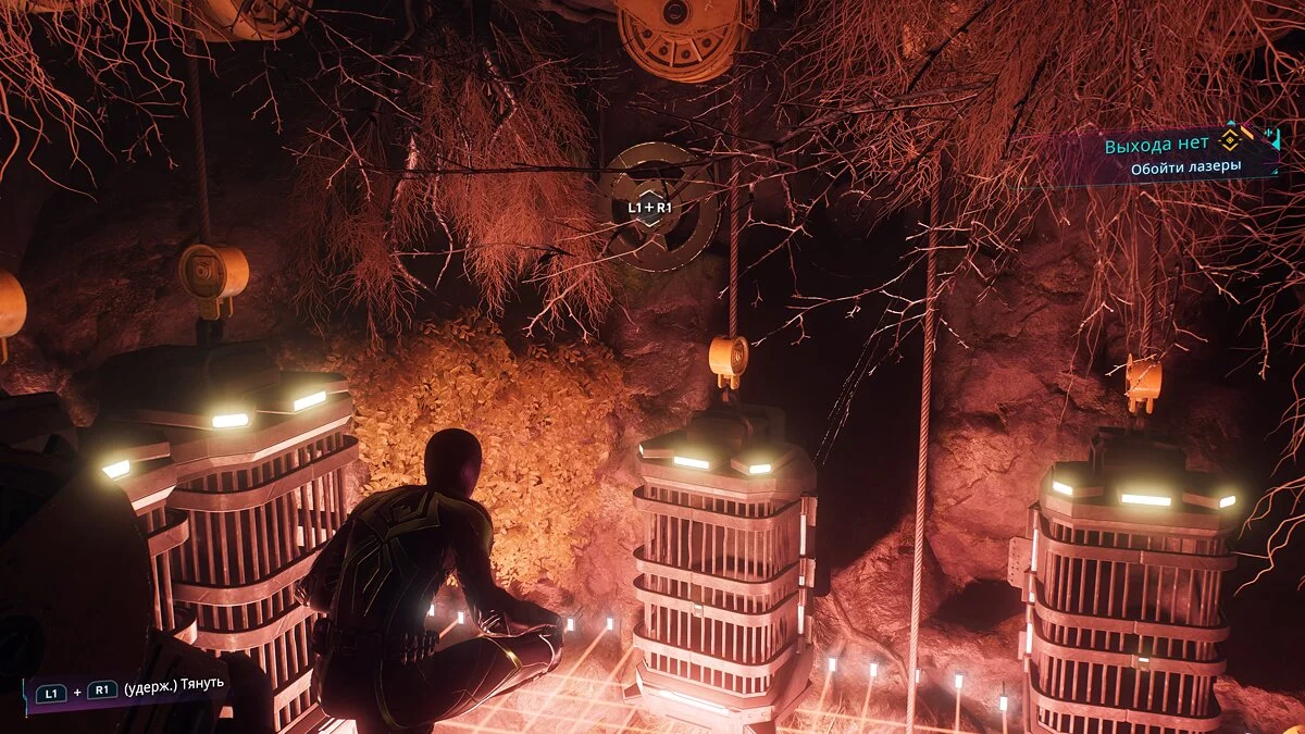 Играем за Майлза. Вам нужно опустить три группы ящиков на лазеры при помощи паутины.