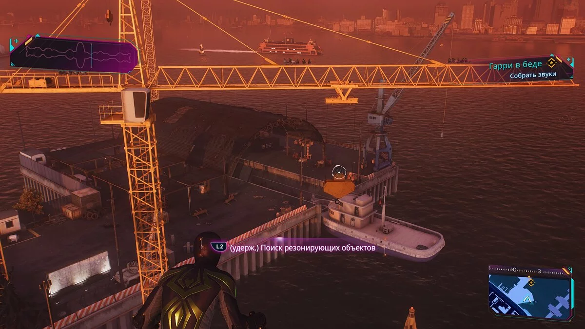 Играем за Майлза. Двигайтесь в порт. Вам нужно отсканировать колокол, который находится на лодке.