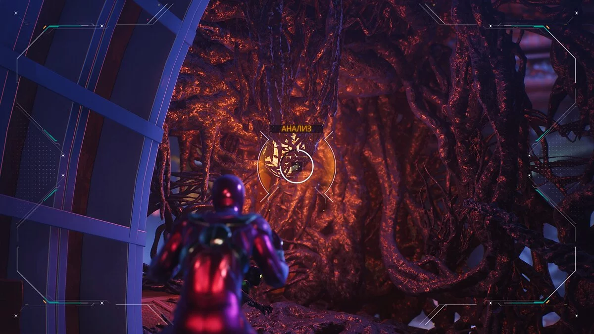 После победы над ними отправляйтесь в метро. Вам нужно найти уязвимое место чёрных щупалец. Просканируйте жёлтый сгусток, а затем ударьте по нему.