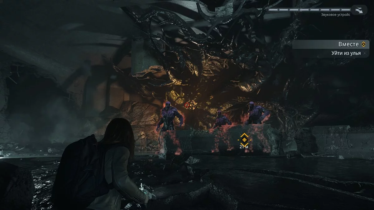 Когда найдёте нужное место, спускайтесь вниз, забирайте пропуск и проходите вперёд. Вас ждёт бой с целой группой симбиотов, но они ведут себя как рядовые противники.
