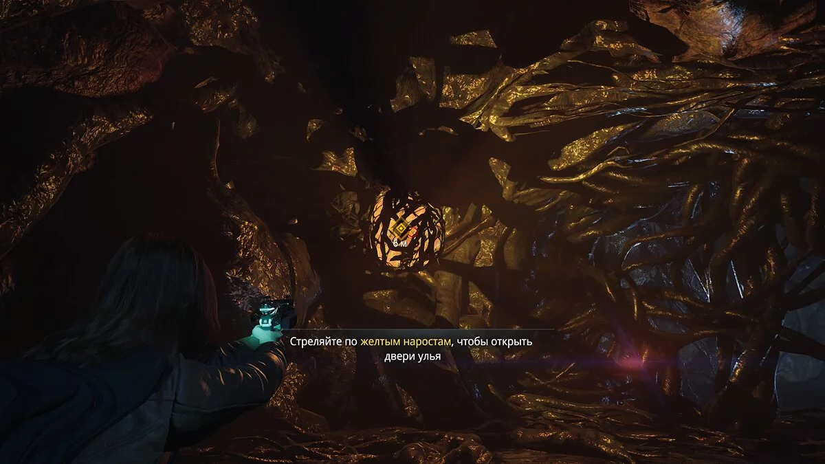 Атакуйте жёлтый нарост, зачищайте локацию и забирайте метеорит. Бегите обратно и стреляйте по уязвимой части улья.