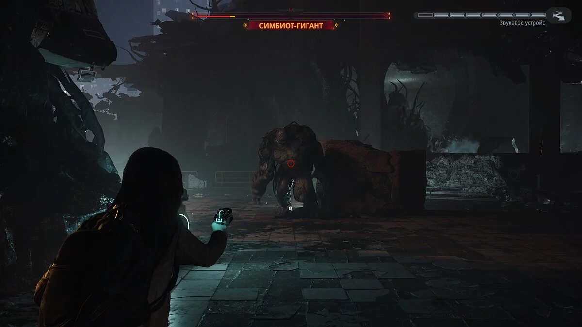 При помощи пистолета можно уничтожать симбиотов. Вам потребуется три выстрела на каждого. Но важно, чтобы прицел горел красным цветом, иначе попадание не засчитается.