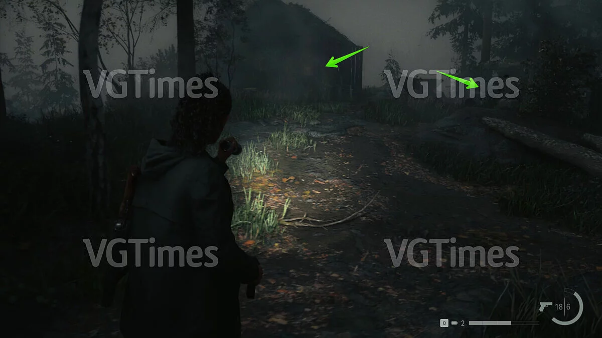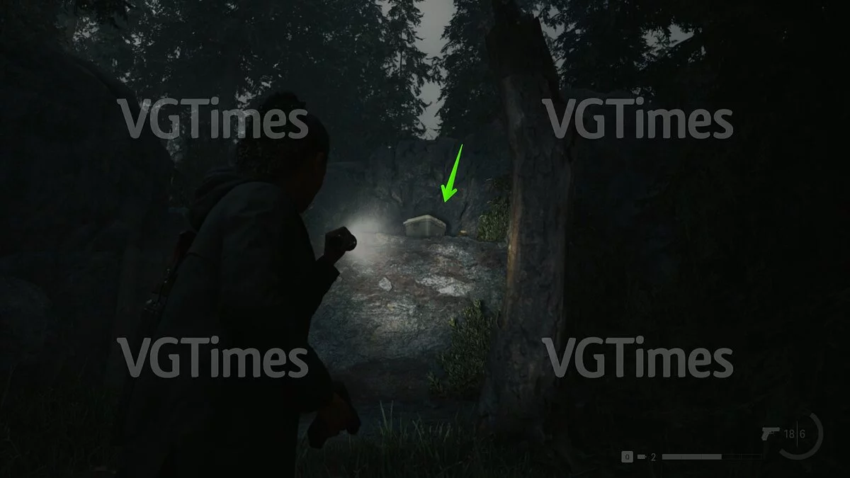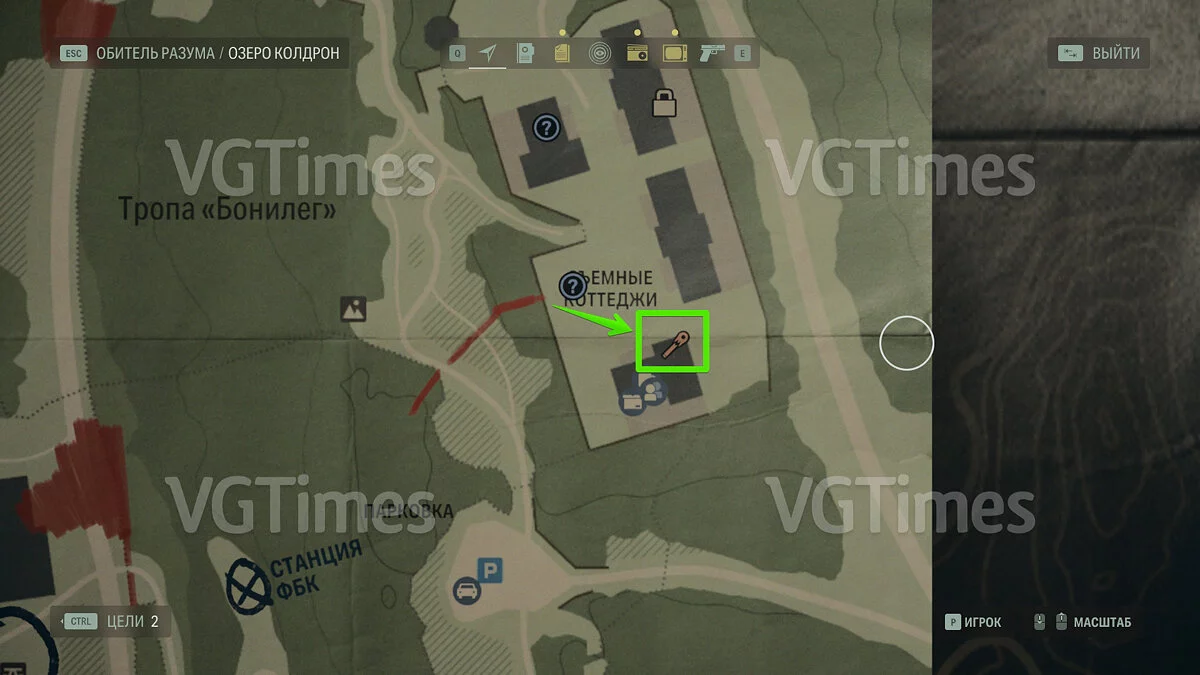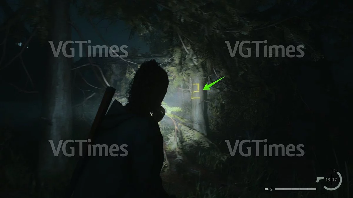 Сразу после этого вы можете отправиться на озеро и открыть проход к съёмным коттеджам. В домике №1 будет ждать запертый тайник. Чтобы его открыть, пройдите через коттедж №3 на задний двор и переберитесь через поваленное дерево. Отыщите беседку — справа от неё есть два дерева, на которых изображены цифры. Позади дерева с цифрой «2» лежит ключ.