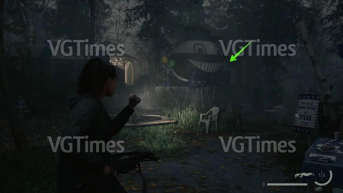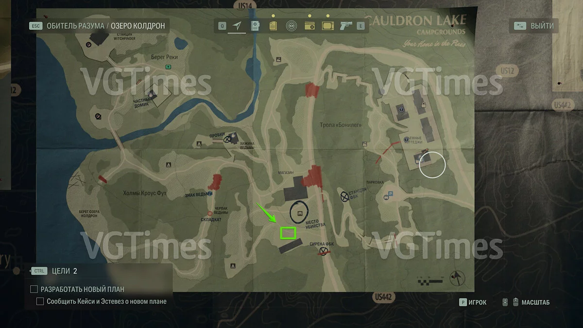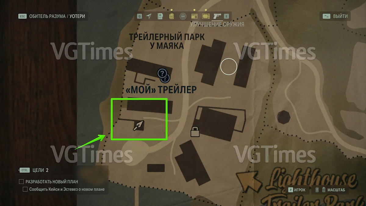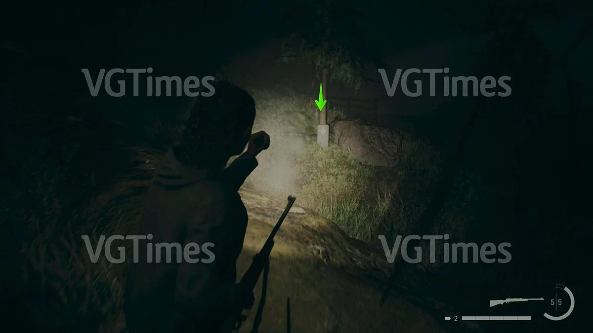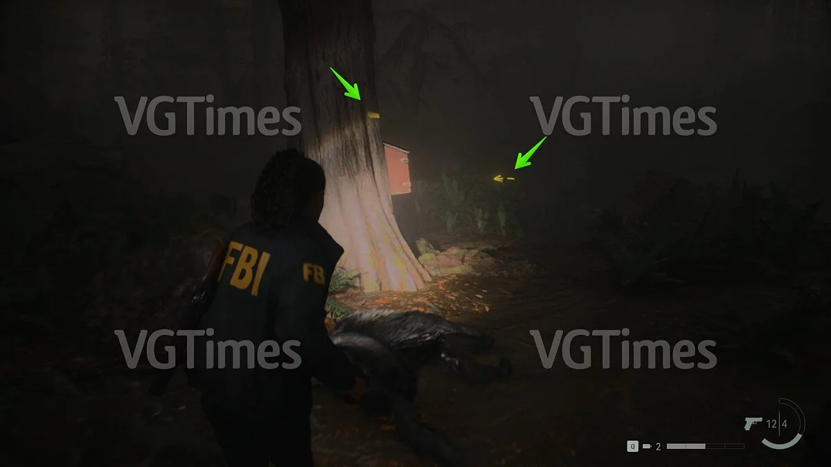 Сразу после этого вы можете отправиться на озеро и открыть проход к съёмным коттеджам. В домике №1 будет ждать запертый тайник. Чтобы его открыть, пройдите через коттедж №3 на задний двор и переберитесь через поваленное дерево. Отыщите беседку — справа от неё есть два дерева, на которых изображены цифры. Позади дерева с цифрой «2» лежит ключ.