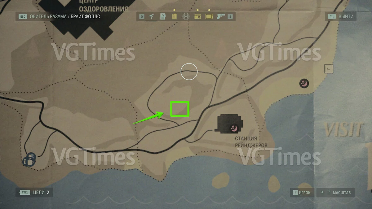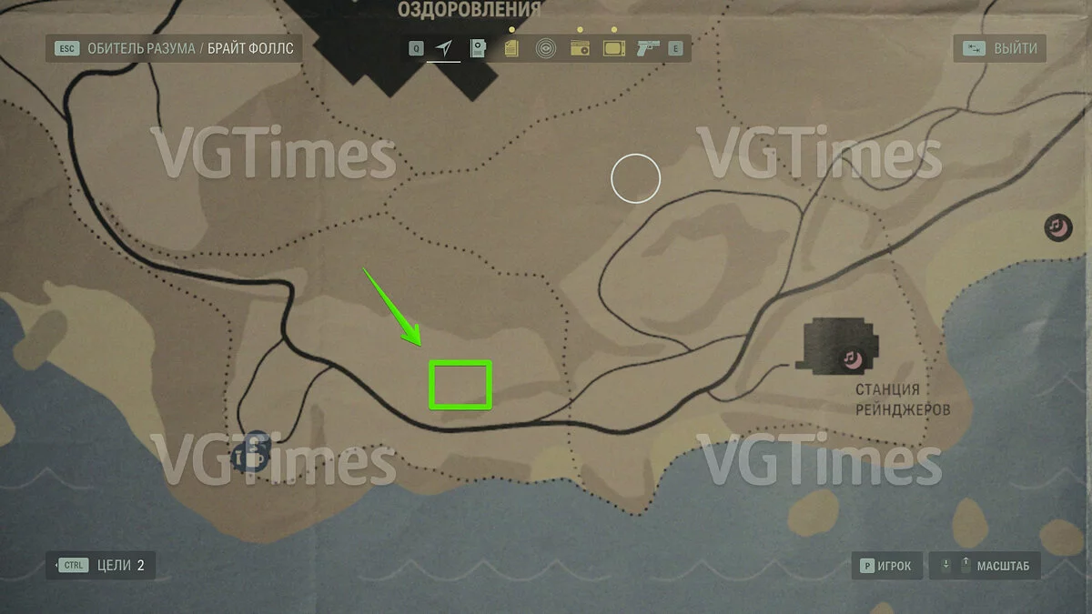 Следующая иконка тайника находится по пути от сейврума к станции рейнджеров. Если внимательно осмотритесь, то сможете обнаружить нарисованные символы на скале поблизости (скриншот ниже).