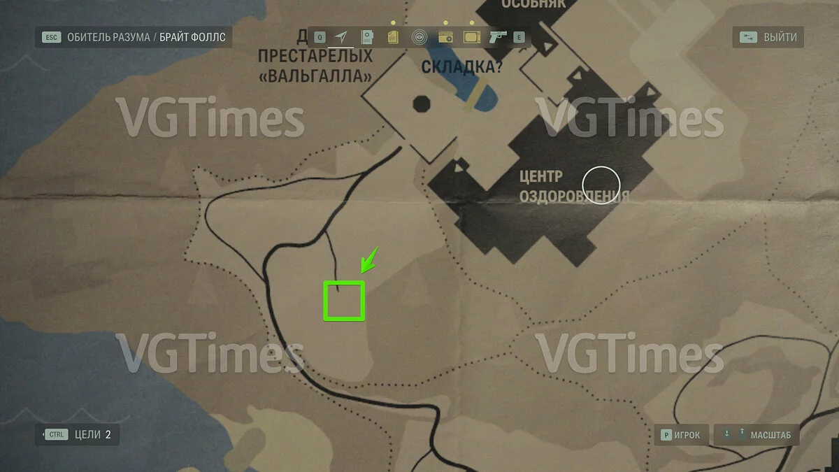 Оставшиеся тайники можно будет отыскать только после завершения сюжетной главы. К этому моменту вы отыщите болторез и сможете проникнуть в ранее недоступные локации. Перерезав трос на заборе у оздоровительного центра, бегите вниз и отыщите на карте метку тайника. Для него понадобится ключ — следуйте за стрелками, изображенными на разбросанных табличках.
