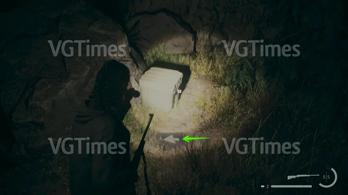 Следующий ящик ждёт вас у одинокой хибары, которую можно превратить в сейврум. Для этого придётся отыскать подсказку или воспользоваться паролем «527».