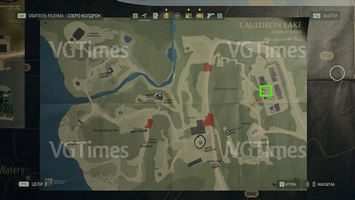 На данной локации можно открыть одну запертую калитку, которая ведёт к съёмным коттеджам. Однако внутри вы найдёте ланч-бокс, тайник культистов, загадку с детским стишком и чучело оленя. Рекомендуем не упускать эту возможность.