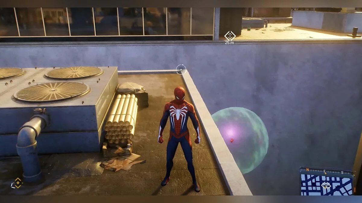 Есть способ упростить поиски. Для этого прокачайте ветку развития костюма «Перемещение» до способности «Всевидение». В описании указано, что на миникарте будут отображаться ящики с деталями, однако важнее то, что также станут видны паукоботы. К сожалению, это не распространяется на карту города в целом, но зато поможет не пропустить робота, когда он висит в пространстве, а вы пролетаете на путине под ним.