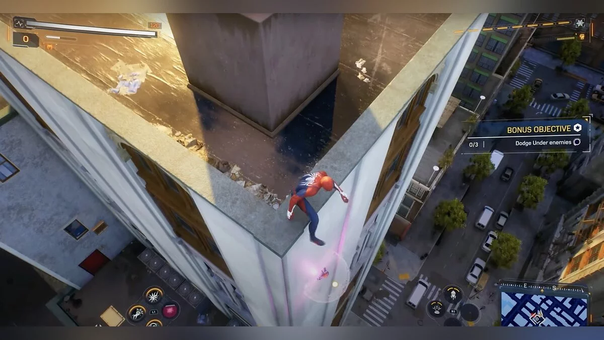 Особенно эффективно парить на большой высоте. Так вы сразу сможете увидеть некоторых ботов на расстоянии, которые скрыты, если летать на паутине между зданий.