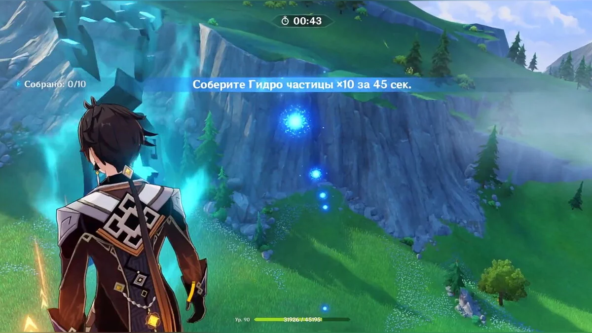 Заберитесь на вершину горы. Там вас ждёт испытание по сбору десяти частиц за 45 секунд.