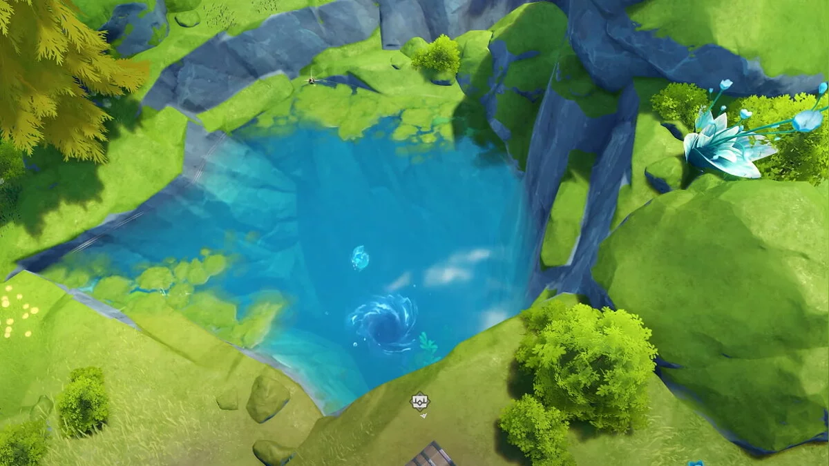 Затем ныряйте в пруд и бейте по источнику пневмы. Он разрушится, после чего появится сундук с ветвью.