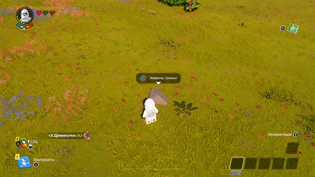 Чтобы сделать что-нибудь в LEGO Fortnite, вам сначала нужно собрать основные ресурсы, бродя по окружающей местности. Во время исследования следите за «мусором», который просто лежит на земле. Это древесина и гранит, но чтобы ускорить процесс, вам понадобятся инструменты.