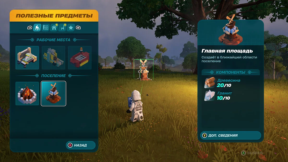 Создать деревню в LEGO Fortnite — это всего лишь построить главную площадь. Проходя обучение, вы создадите костер, простую лачугу и верстак. Все это нужно, чтобы открыть предмет «Главная лошадь». Также вам придется собрать древесину и гранит, которые разбросаны вокруг.