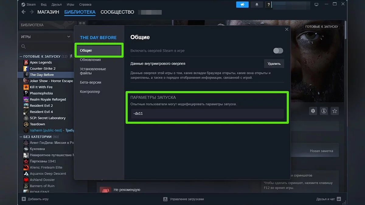 По умолчанию The Day Before использует последнюю версию DirectX, однако на бюджетных и откровенно слабых машинах это может приводить к зависаниям и фризам. Чтобы избежать просадок кадров, попробуйте запустить приложение на DirectX 11 версии.