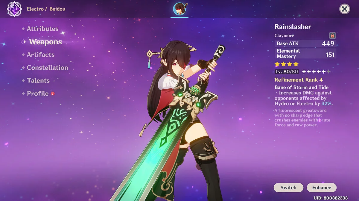 Этот меч подойдет вам только в том случае, если в вашей команде есть Электро или Гидро-персонажи и вы проводите вместе с ними стихийные реакции.