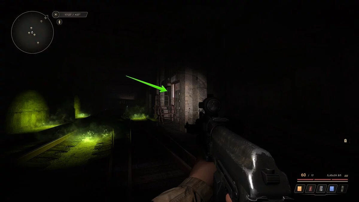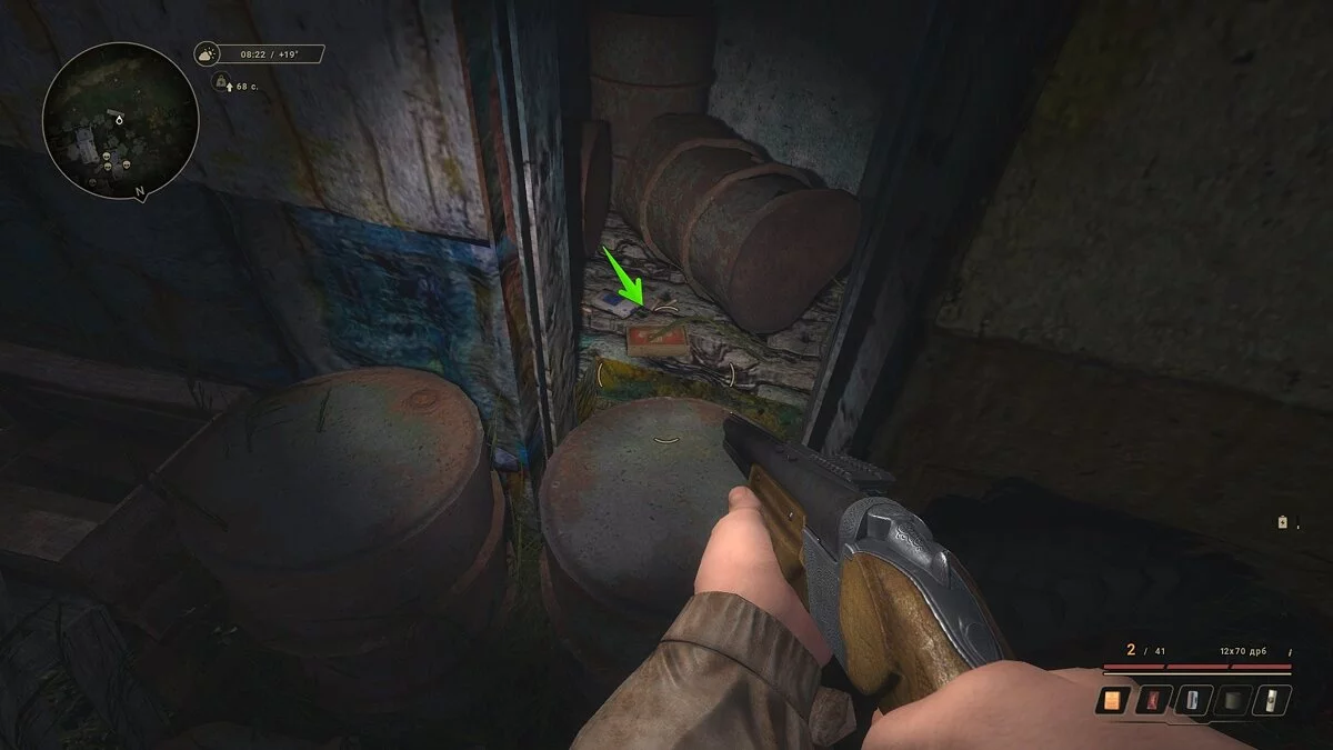 Следующий набор достать немного сложнее — он находится в тоннеле позади Депо. Перед тем, как отправиться в отмеченную область, обязательно подготовьтесь и прикупите оптический прицел. Перед и в самом тоннеле обитает несколько групп бандитов. Они будут атаковать издали и легко могут расправиться с вами. Рекомендуем вернуться сюда после выполнения задания «Необычная просьба», так как вы получите ключ от схрона бандитов в этом тоннеле и заодно сможете забрать детектор «Велес».