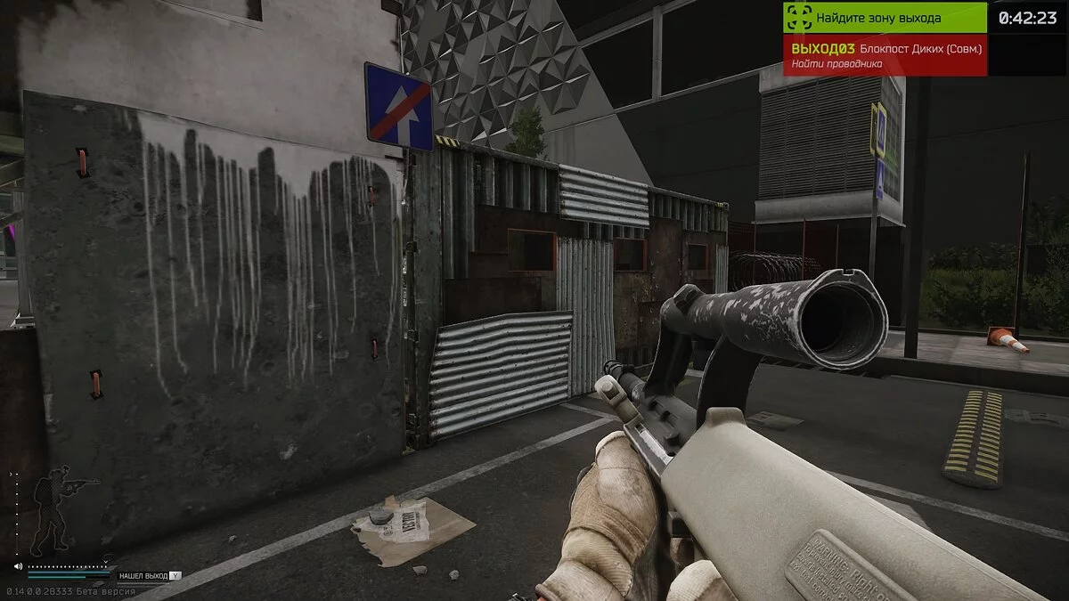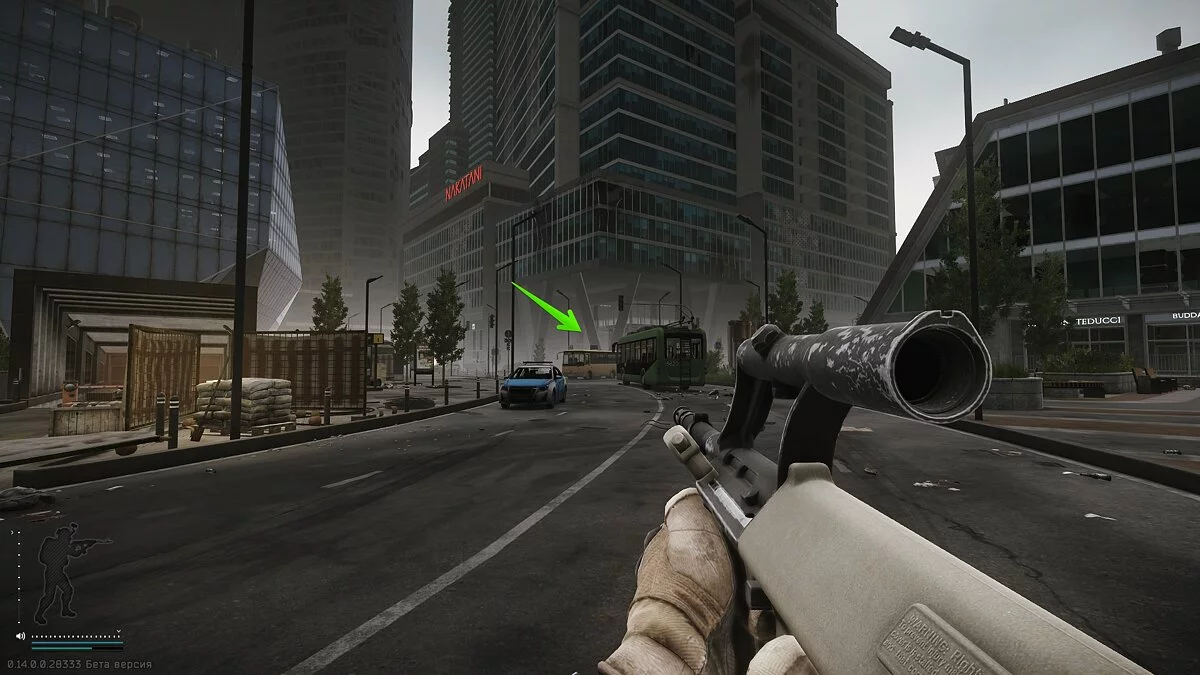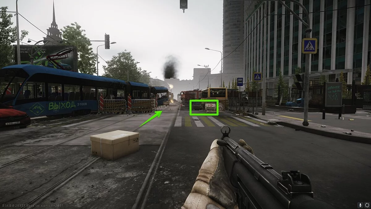 Точка эвакуации находится между зданиями Terragroup и Empire. Это классическое «такси» — чёрный внедорожник, водителю которого нужно заплатить, чтобы убраться с локации. Возможно, автомобиль может появляться случайно, как на других картах, однако за время игры мы наблюдали его в каждом рейде.