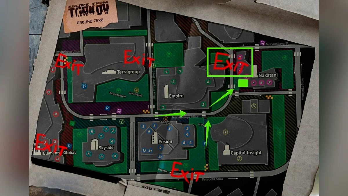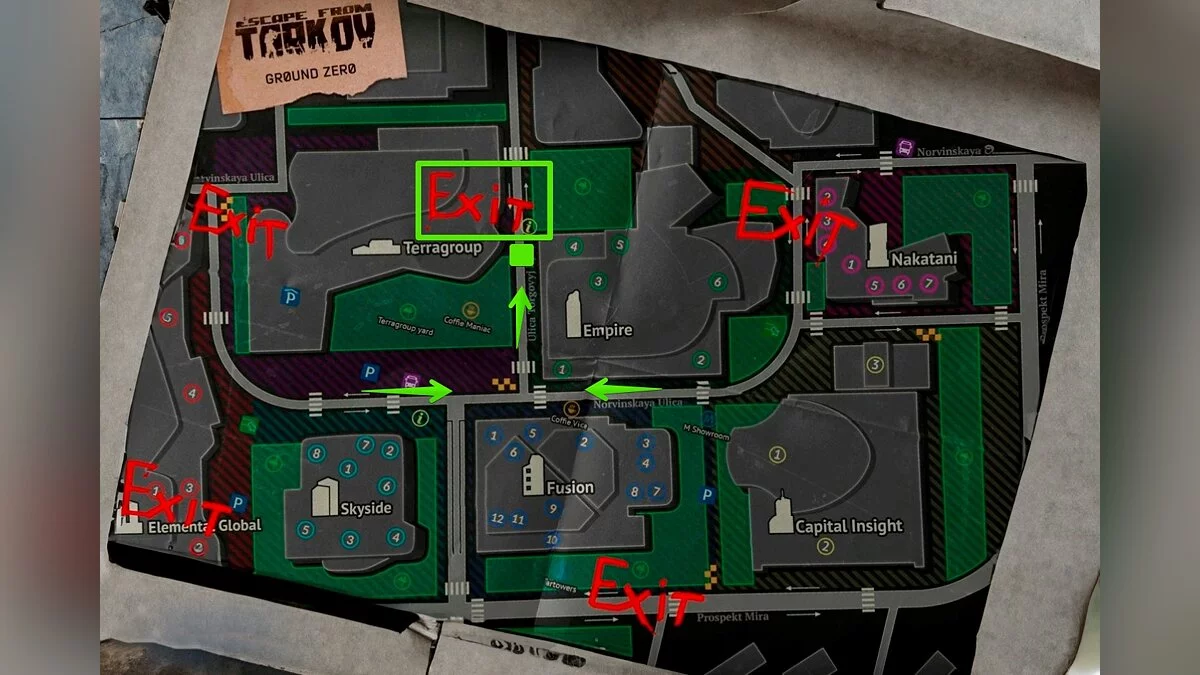 Все выходы на локации «Эпицентр» в Escape from Tarkov