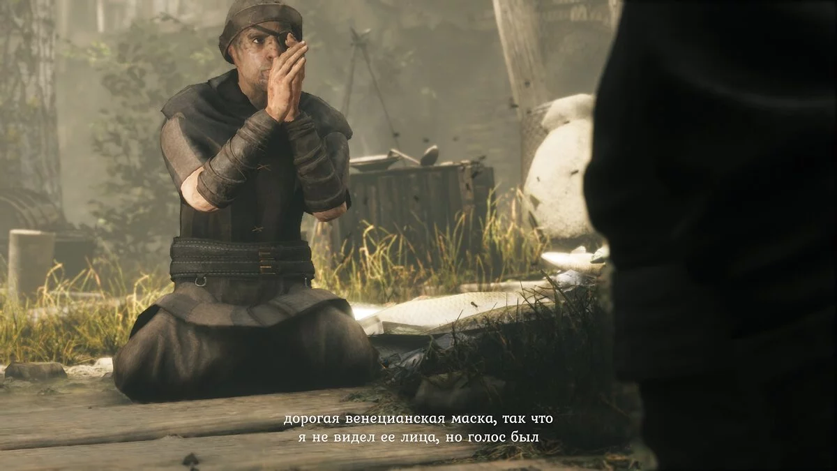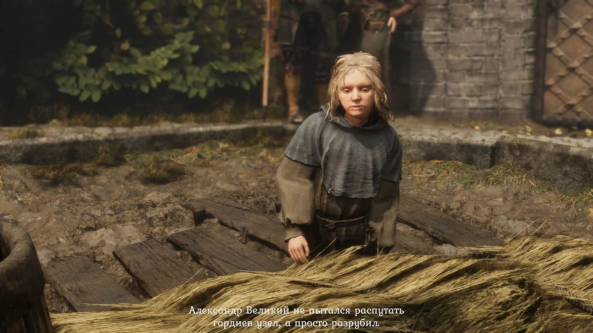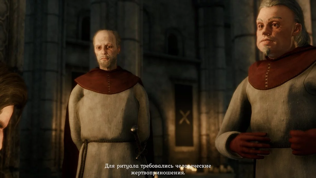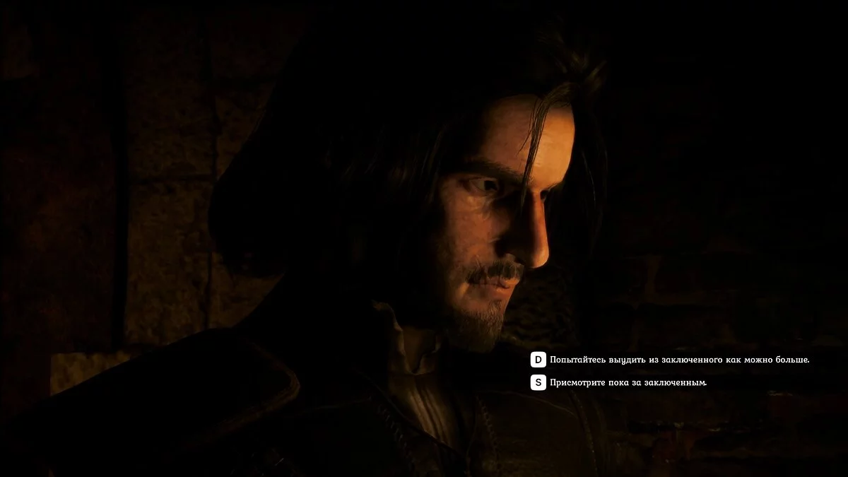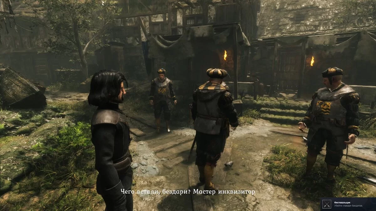 После битвы и продолжительной катсцены инквизитор окажется связанным перед тремя еретиками. В этот же момент вы увидите девочку-сироту со своей собакой, которая хочет помочь главному герою. Однако для этого придётся разговорить похитителей. Выбирайте следующие варианты: