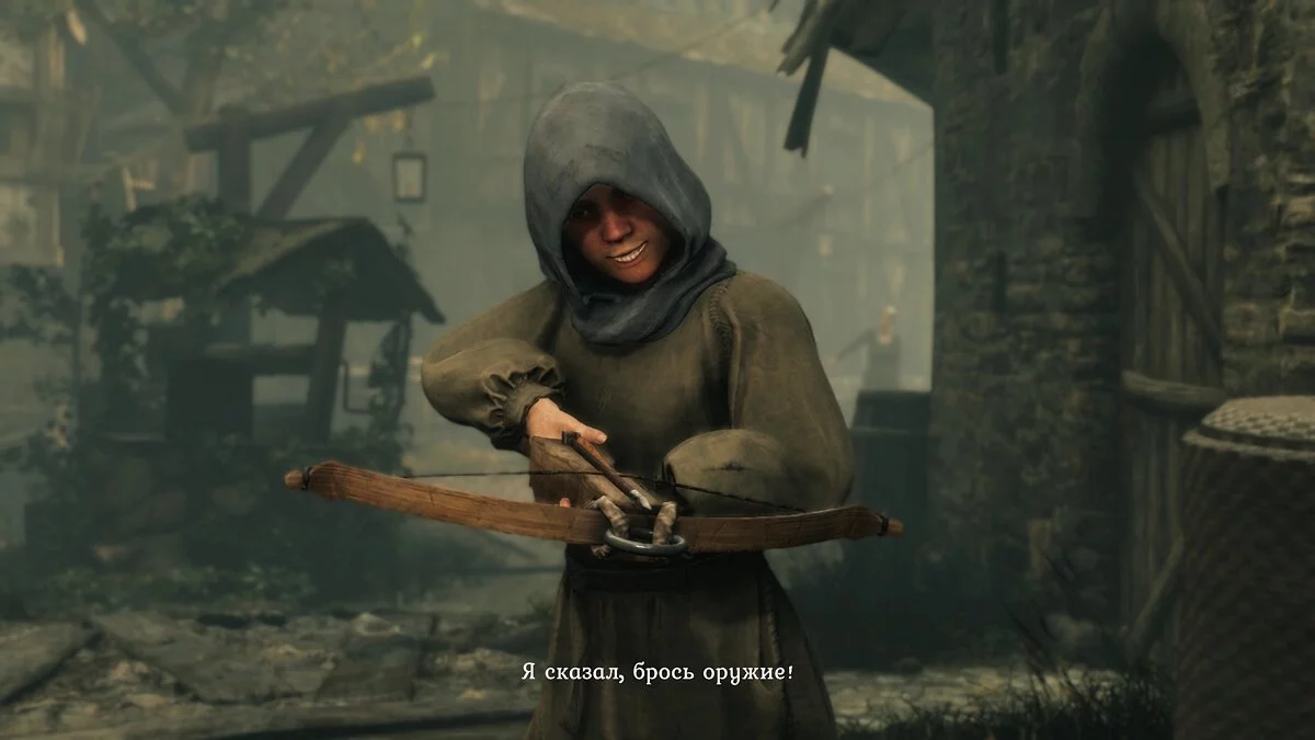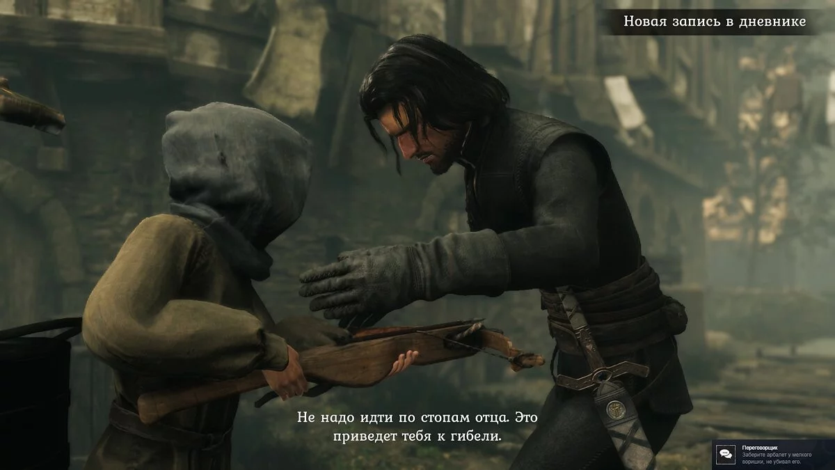 Сделав всё правильно, вы отнимете арбалет у воришки и получите достижение «Переговорщик».