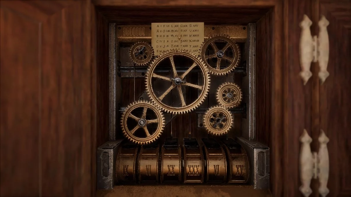 Когда сделаете это, появится отверстие для ключа. Однако он находится в другом месте. Осмотрите левый шкафчик с кодовым замком у алтаря. Только вместо цифр здесь нужно составить комбинацию из латинских букв. Это несложно, ведь она изображена на двери шкафа — «INRI».