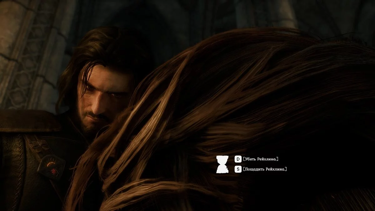 Если всё сделаете правильно, получите достижение «Мастер тянуть время». Помимо этого, сможете выбрать: убить Рейхлина в теле Лилианы или пощадить его. Мы не знаем, как отразится второй вариант на сюжете, но если выберите первый, то убьёте и Рейхлина, и девушку.