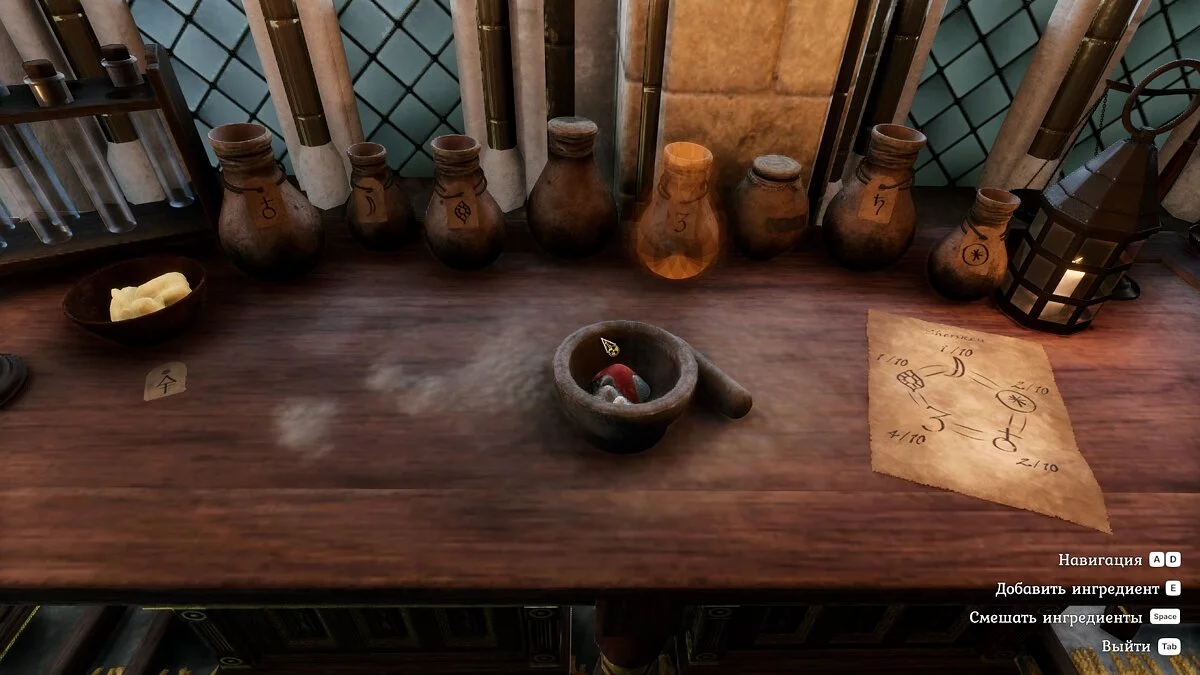 В комнате кардинала в библиотеке вы найдёте лабораторный стол и сможете изготовить порошок инквизиторов. Для этого следуйте инструкции на столе: