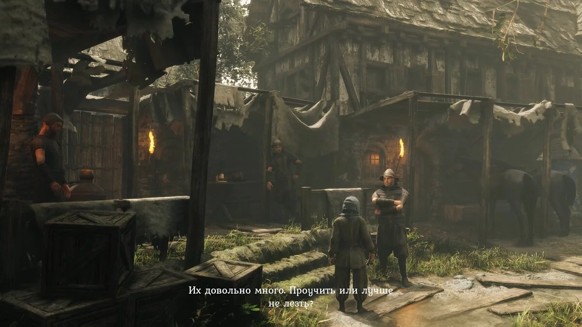 После беседы с торговцами на причале вы снова увидите воришку, укравшего порошок у инквизитора. Проследите за ним и доберитесь до логова разбойников. Здесь опять будет выбор: проучить их или не вмешиваться. Если выберите первый вариант, то сможете разблокировать несколько достижений, но вам также придётся убить отца мальчика.