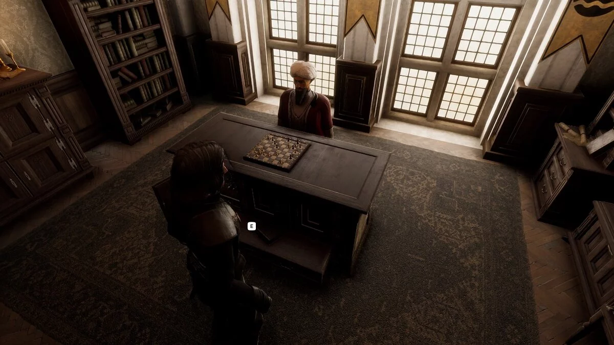 Мы не нашли прямого способа победить его в честной игре, но после некоторых неудачных попыток открывается альтернативный путь. Инквизитор отыщет потайную дверцу в столе, где находится механизм шахмат. Чтобы решить эту загадку, необходимо установить следующие символы: