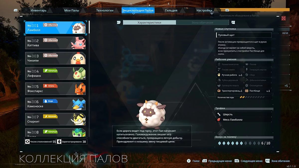 «Энциклопедия Палов» поможет выяснить, что конкретно умеет тот или иной вид существ. Важно найти таких Палов, которые смогут выполнять работу на базе без вашего непосредственного участия, иначе пополнение ресурсов замедлится.